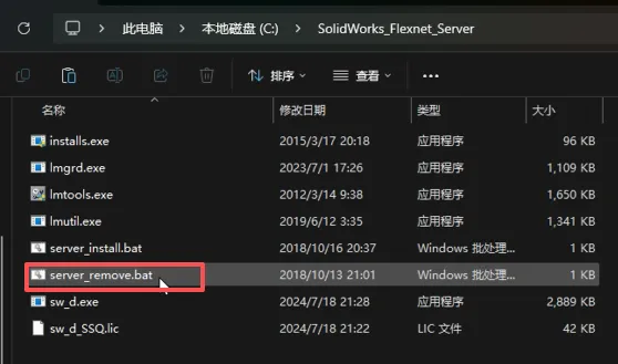 10、打开【SolidWorks_Flexnet_Server】文件夹,双击【server_remove.bat】运行