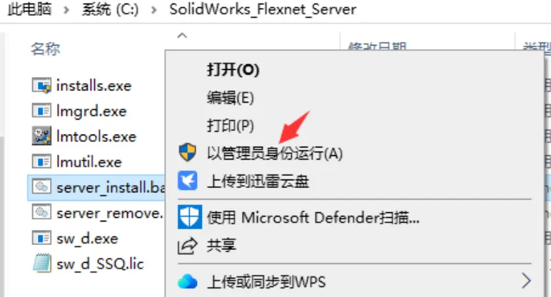 11、再选中【server_install.bat】,鼠标右键【以管理员身份运行】