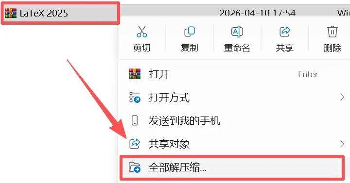 解压前请关闭杀毒软件,参考下面安装步骤即可! 注:LaTeX安装步骤大体相同,大家参考下面安装步骤即可。 温馨提示:找大叔远程安装享不限速下载,快速安装,省时省力,自己安装要花五六个小时甚至更多,影响您宝贵的时间(大叔所有远程安装均提供90天独家售后服务) 1、鼠标右键全部解压 ![]() 2、选中txxlive2025,右键选择“装载” ![]() 3、选中 install-tl-windows 右键以管理员身份运行