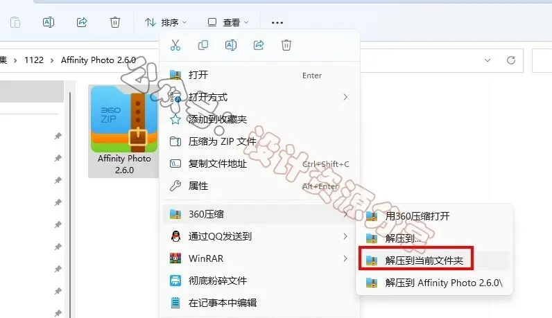 [软件名称]:Affinity Photo 2.6[注意事项]:安装前请关闭杀毒软件和关掉安全中心,否则易安装失败。[解压软件]:小编用的解压软件是WinRAR,https://www.winrar.com.cn/安装教程: