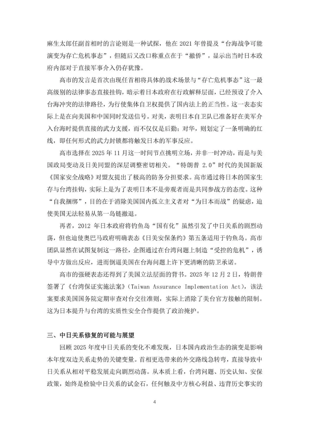 2026 年 2 月自民党在众议院选举中的压倒性胜利,进一步从民意基础和权力结构上固化了这种对抗性的国家姿态。上述转向的核心动力在于日本在中美博弈加剧、特朗普政权回归背景下的国家定位焦虑与激进调整,其结果不仅改变了中日互动的基本盘,也导致东亚地缘格局进入了一个更加不稳定的动荡周期。