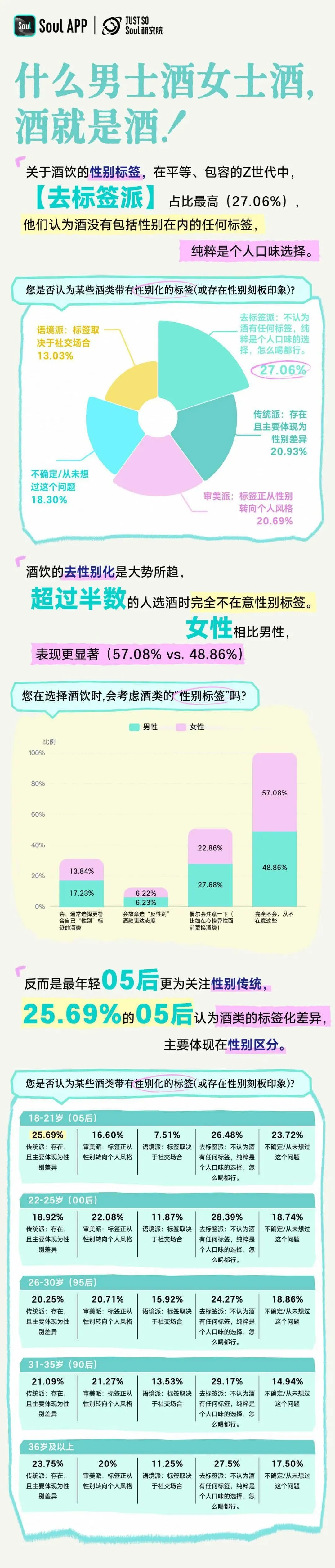 关于酒饮性别标签,Z世代中去标签派占比最高,认为酒无性别之分。近六成用户饮酒偏好后天养成,转变高峰在18-22岁,主要因生活压力和情绪缓解需求。Z世代酒局注重松弛感,以闲聊和交心为主,强行续杯和吹牛是最令人厌恶的酒后行为,好酒品定义关注尊重、边界与自律。