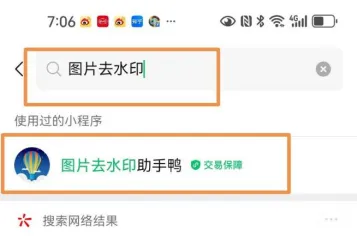 2.输入:图片去水印,找到图片去水印助手鸭,点击进入。
