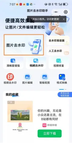 1.微信右上角搜索:抖抖去水印