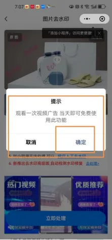 5.第一天使用的时候需要观看一次广告,我们点击确定。