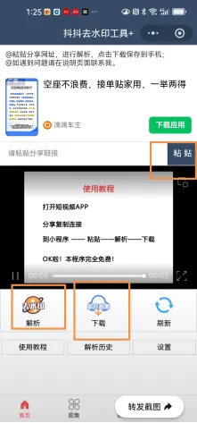 点击粘贴——解析——下载——(第一次下载要看30秒广告)自动保存到相册。