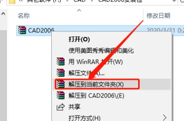 1.打开下载的软件安装包,鼠标右击压缩包【解压到CAD2006】。
