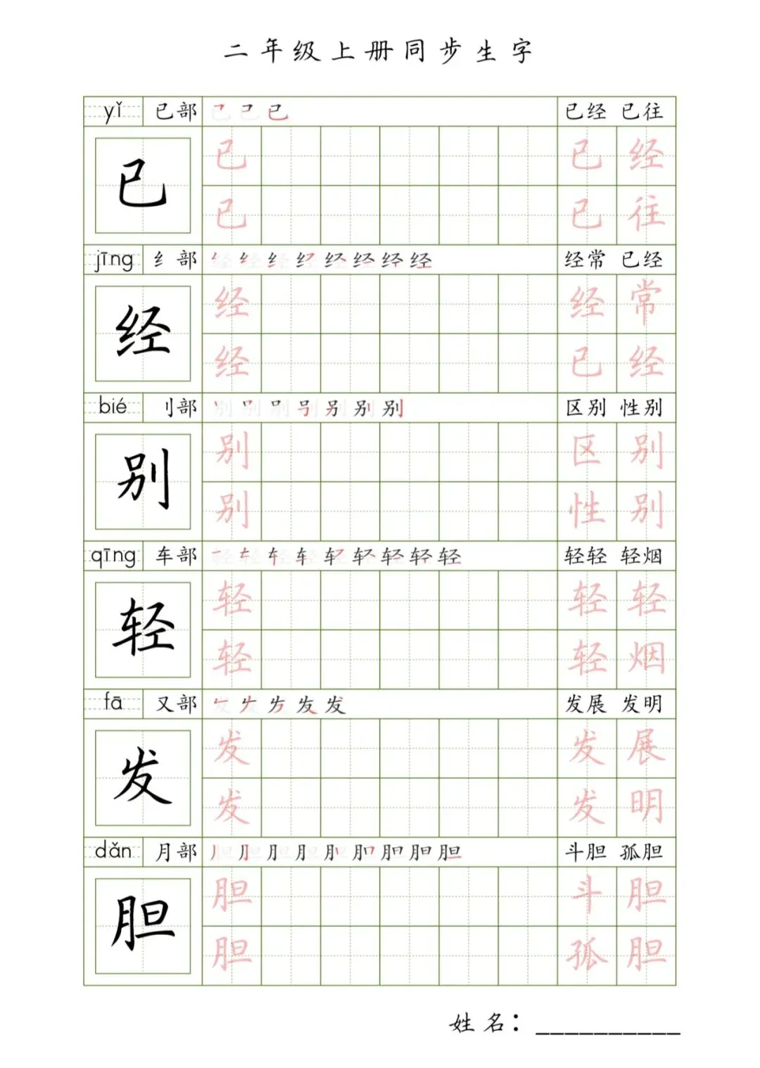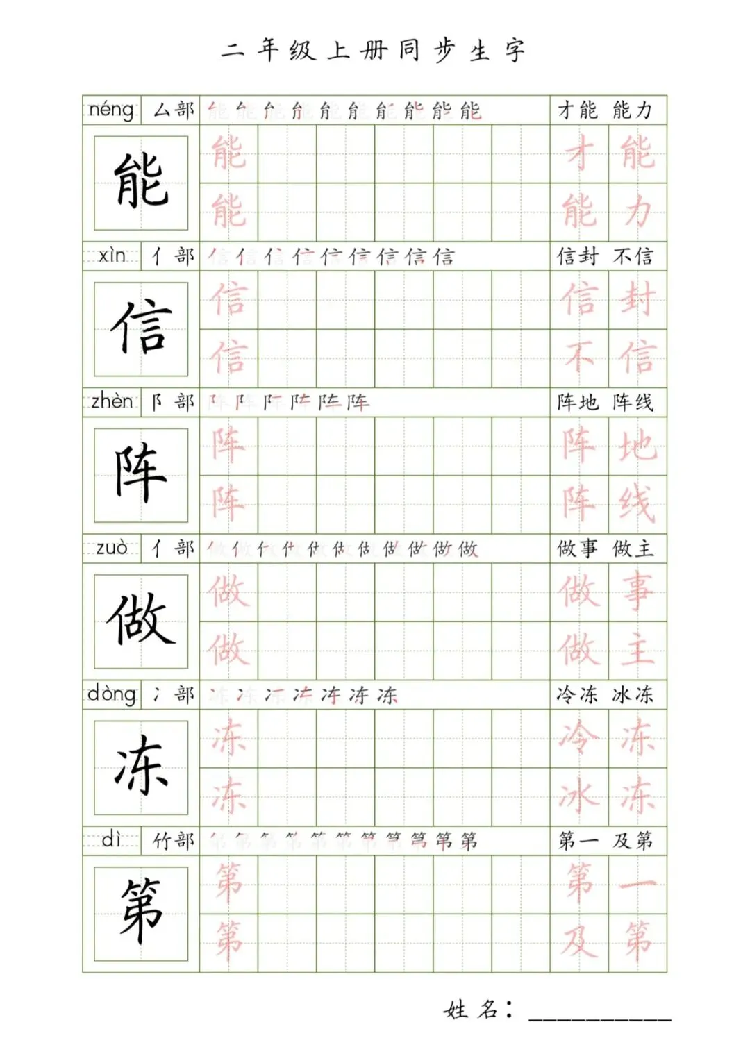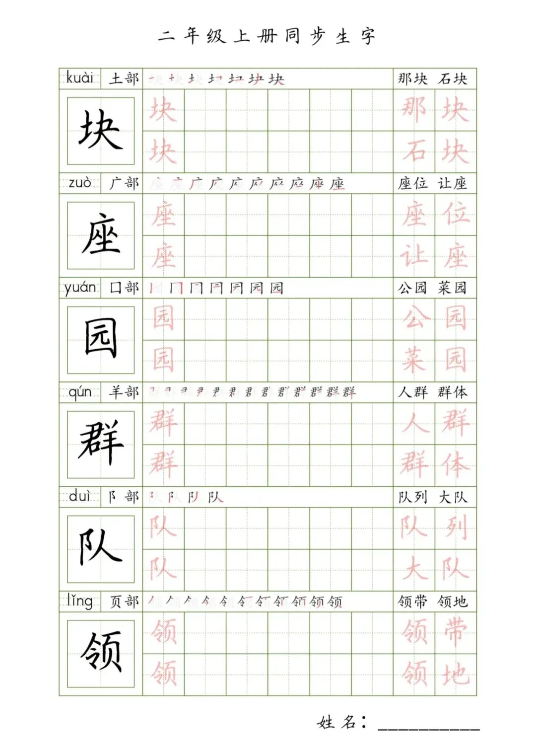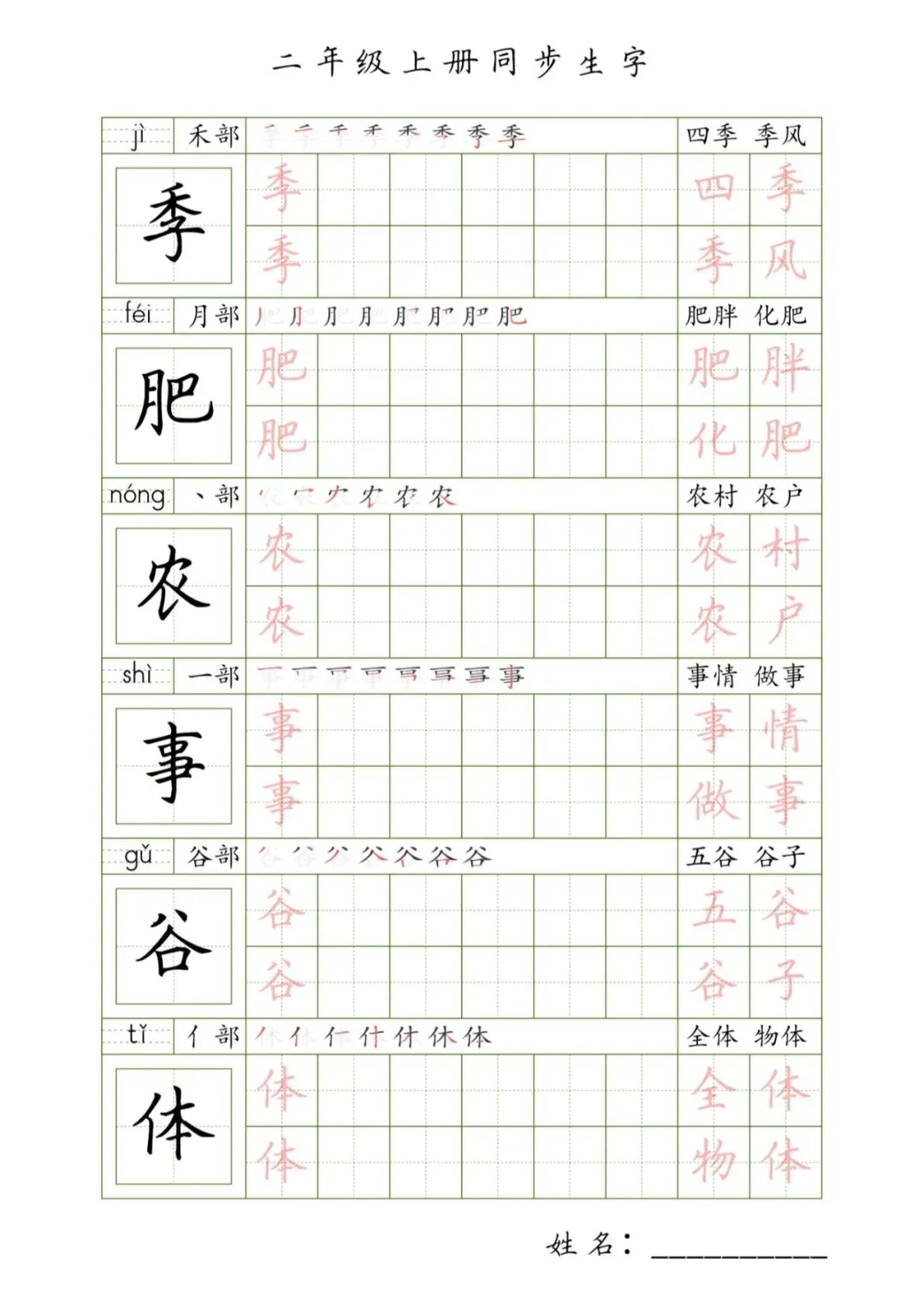 >二年级上册同步生字,PDF免费下载