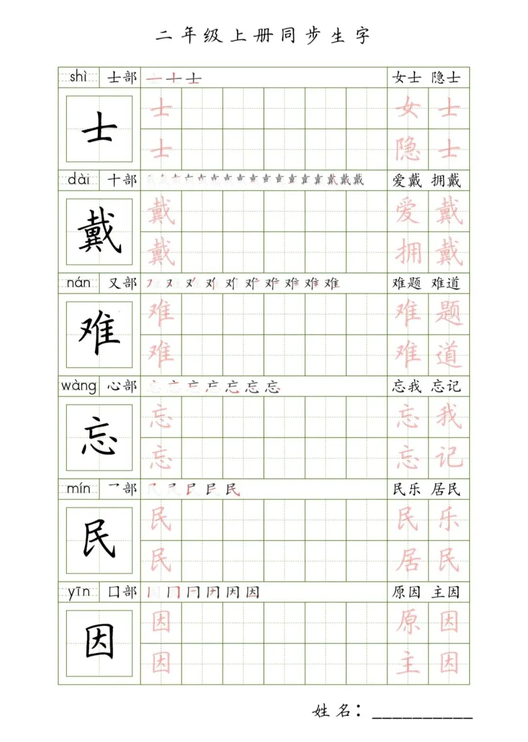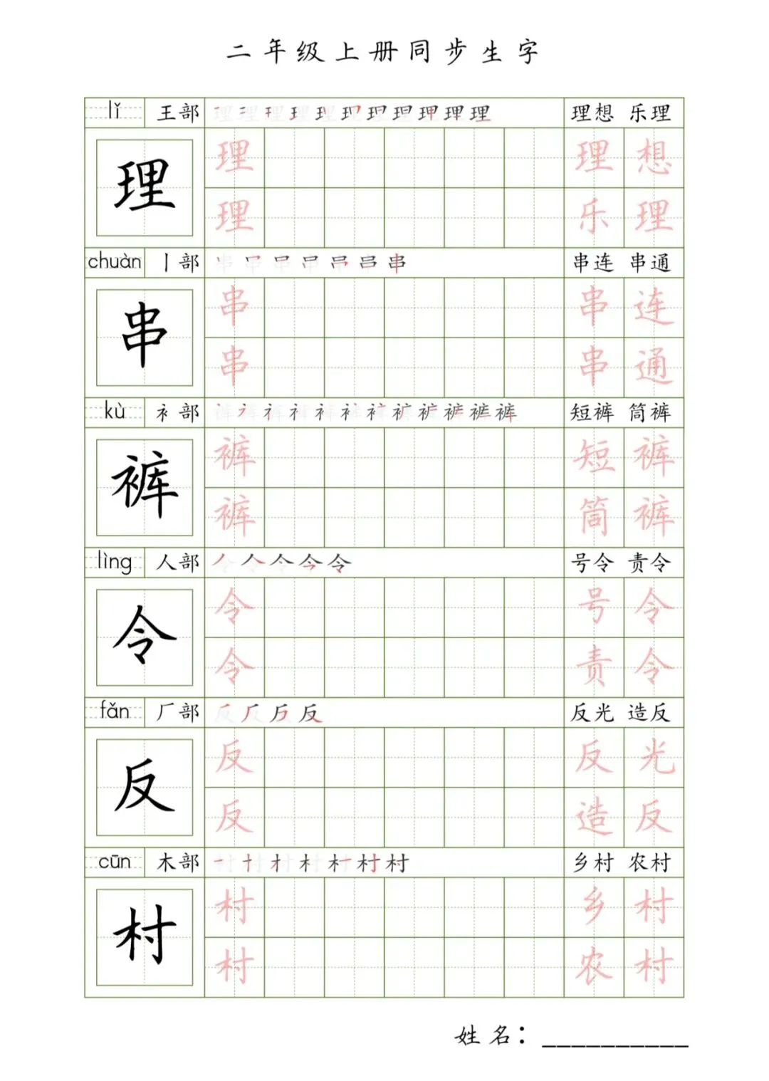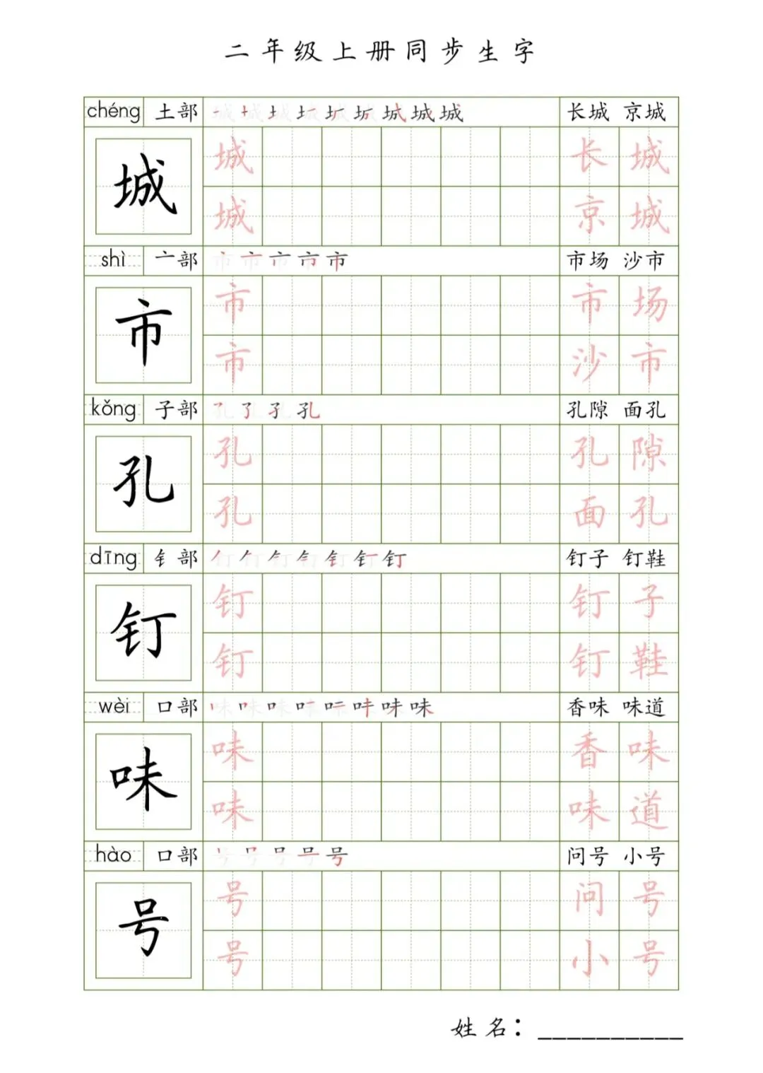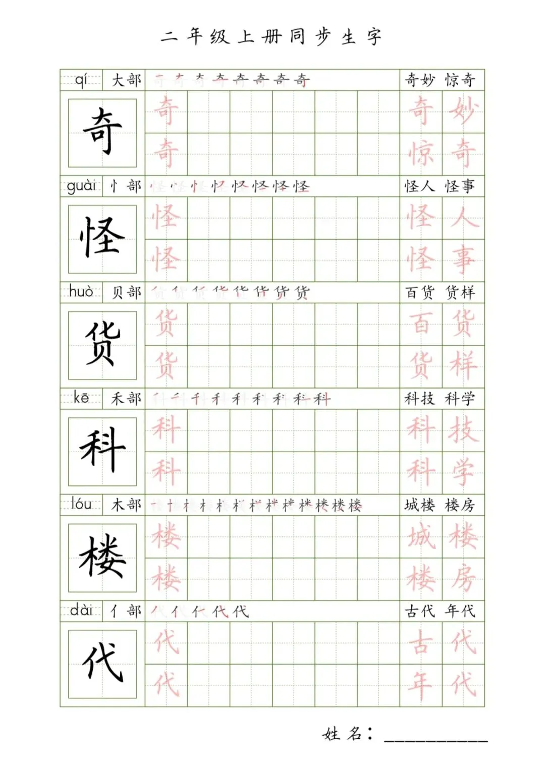 >二年级上册同步生字,PDF免费下载