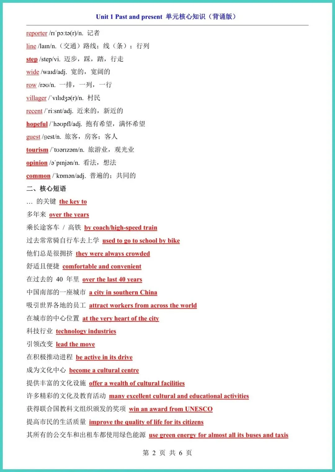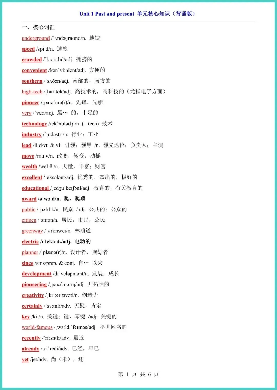 【免费下载】八年级(下)英语Unit_1_核心知识(译林版) | PDF完整高清电子版可打印