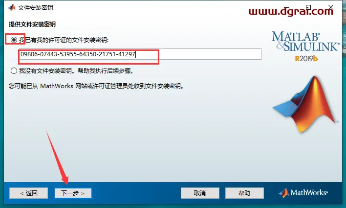5、选择我已有我的许可证的文件安装密钥,然后输入: