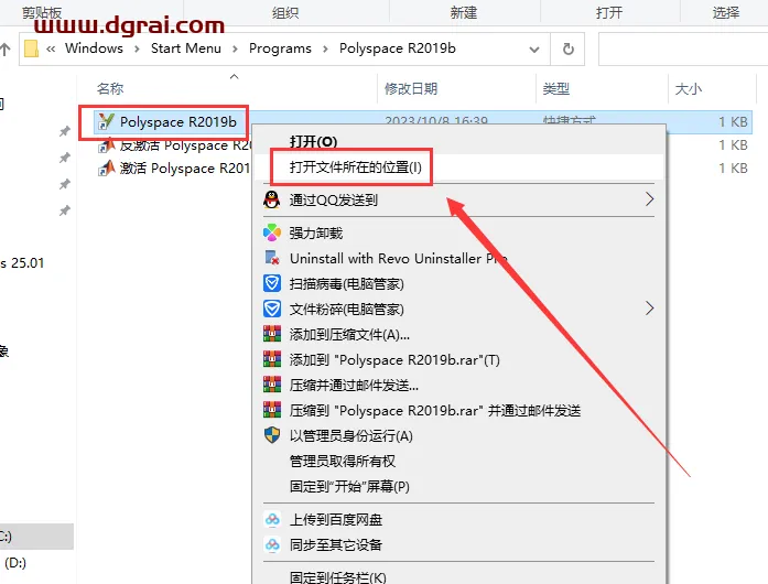 12、继续选择Polyspace R2019b,鼠标右键打开文件所在的位置进去安装位置
