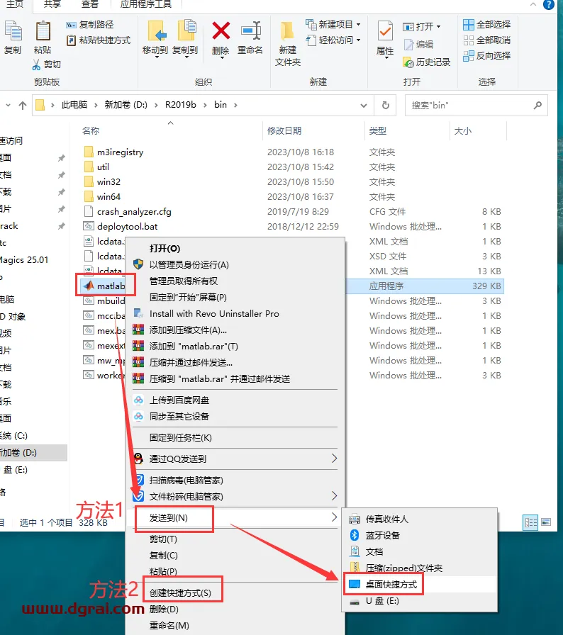 15、打开安装位置bin文件夹,找到matlab应用程序,鼠标右键发送到桌面快捷方式或者创建快捷方式复制到桌面