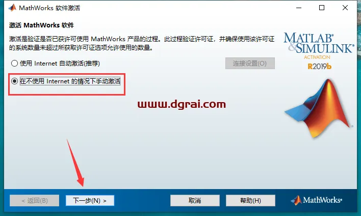 16、在桌面找到matlab软件打开,选择在不使用Internet的情况下手动激活,然后下一步