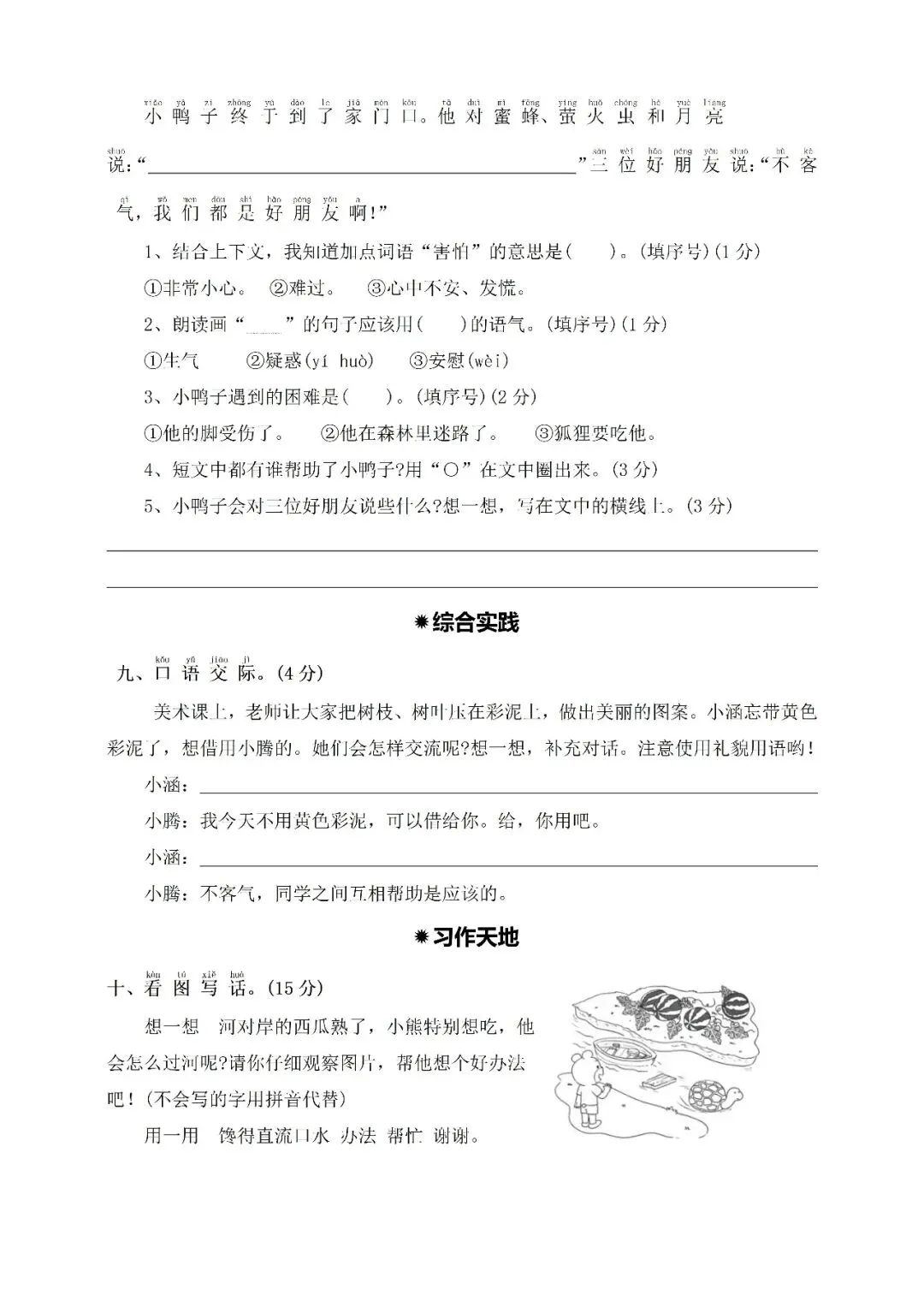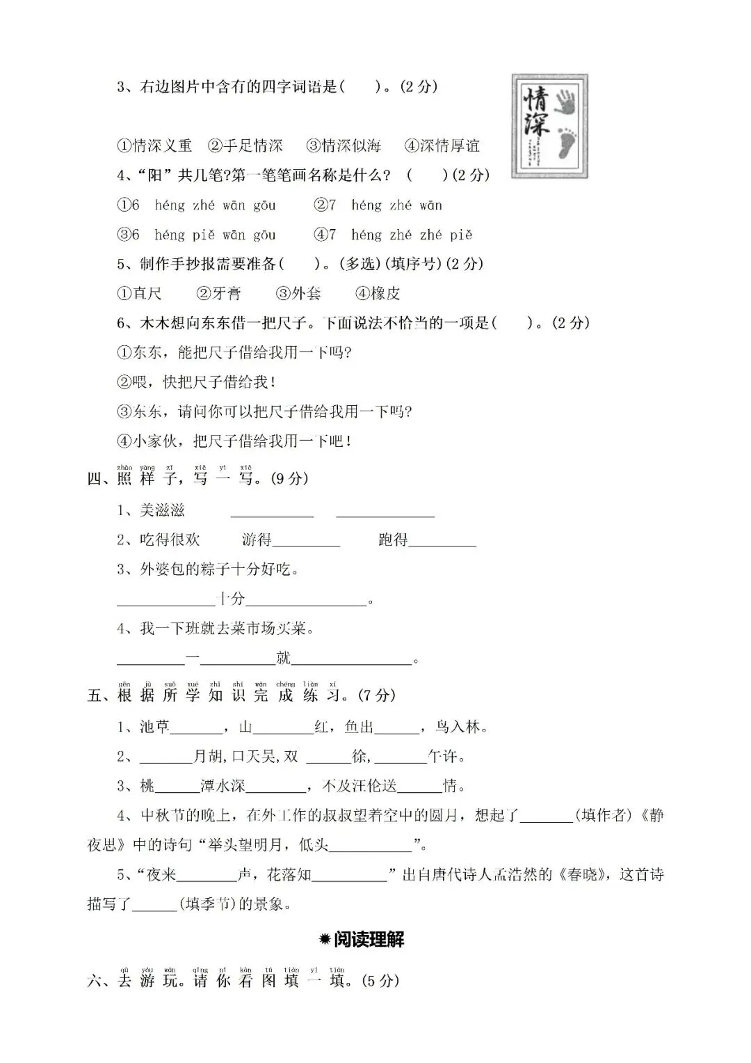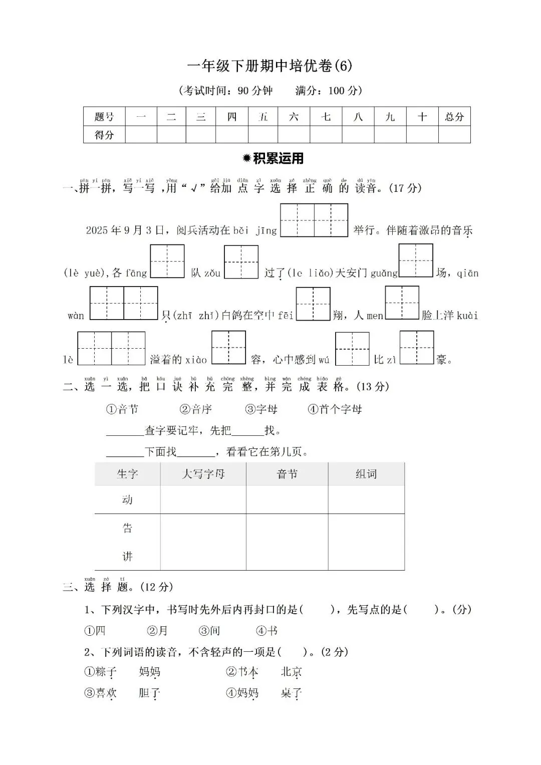 >一年级下册期中培优卷⑥附答案(免费下载)