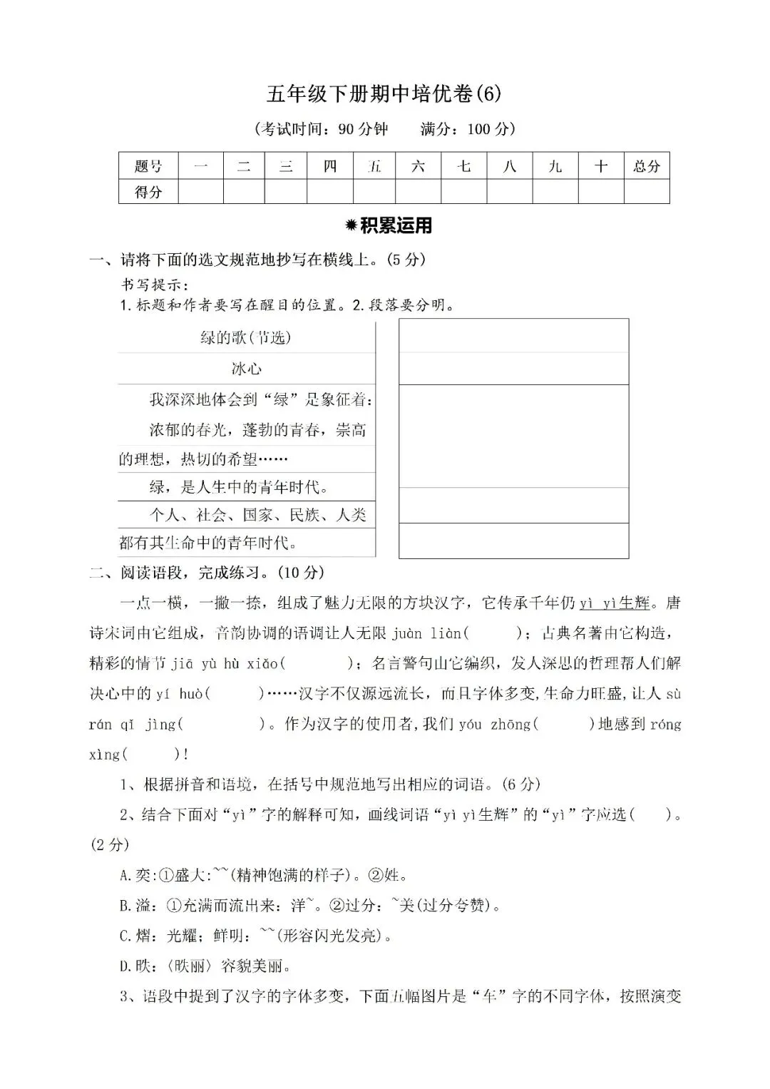 >五年级下册期中培优卷⑥附答案(免费下载)