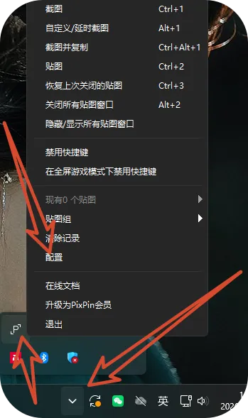 6、在桌面右下角,找到pixpin图标,点击配置,就可以对它进行设置
