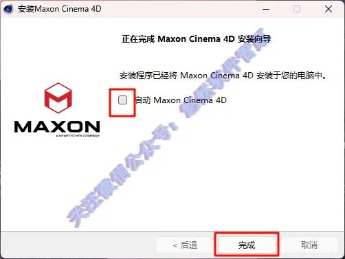 7.取消勾选【启动】然后点击【完成】