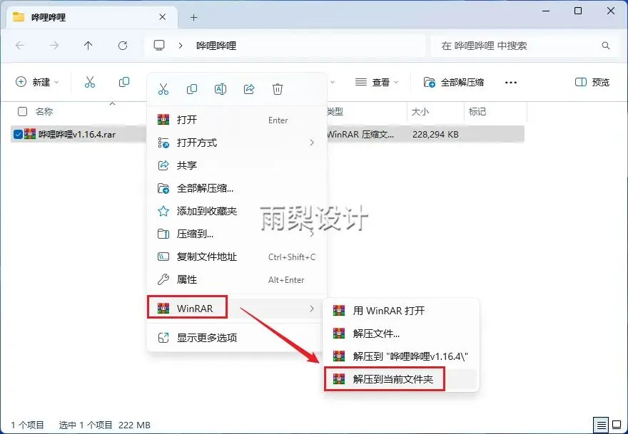 1. 右键点击下载的压缩文件,选择【解压到当前目录】