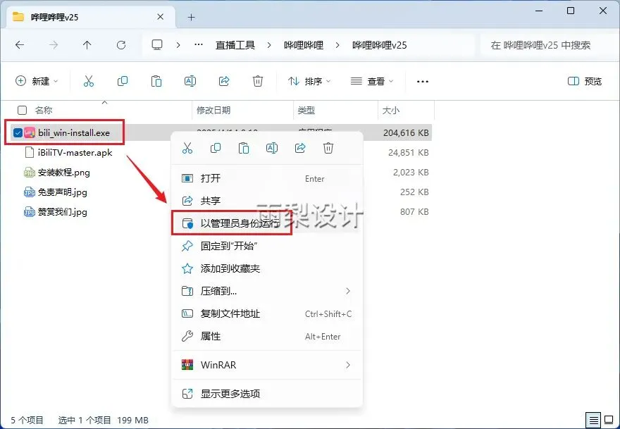2.右键【【bili_win-install】选择【以管理员身份运行】提示:另一文件为TV版