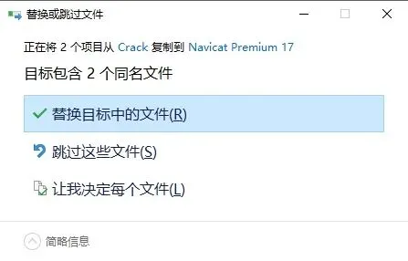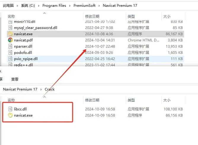 7、将Crack内的补丁复制粘贴至软件的安装路径文件内。默认路径【C:\Program Files\PremiumSoft\Navicat Premium 17】