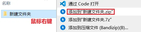 选中文件夹,鼠标右键,根据需要压缩添加到.zip/.7z文件