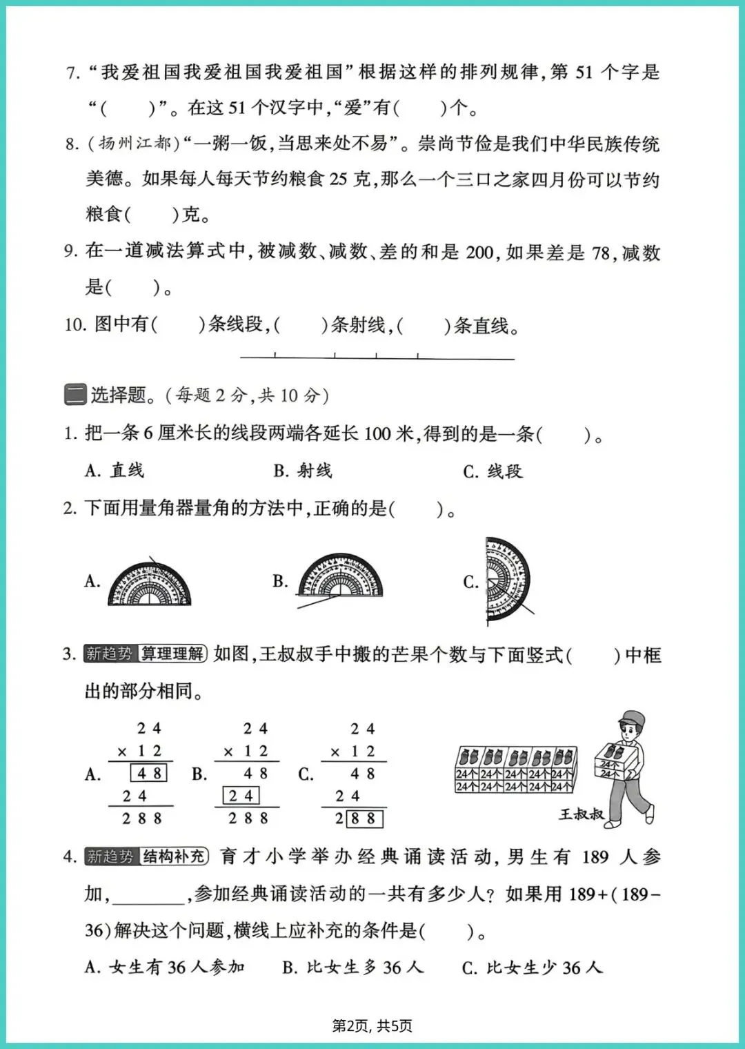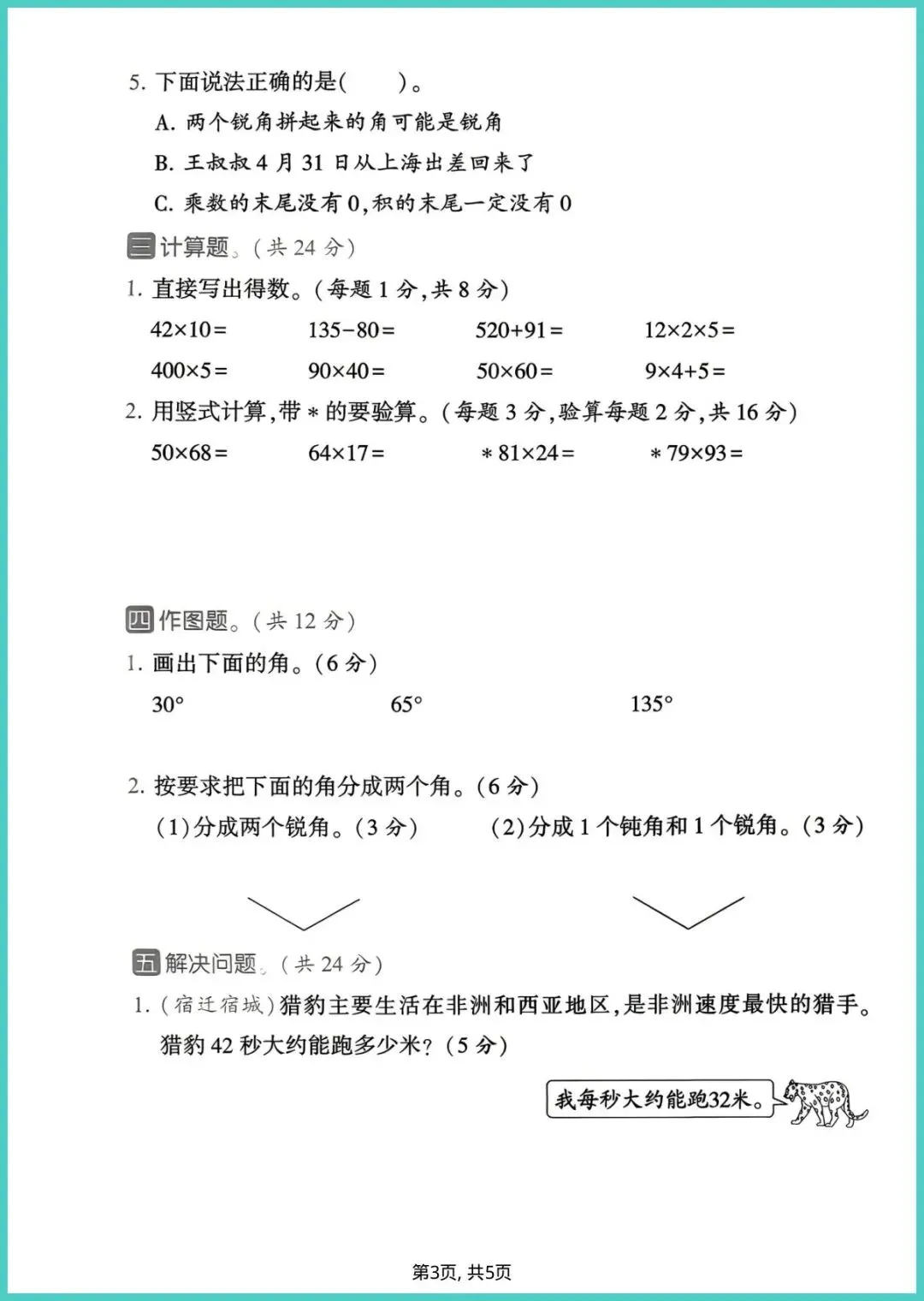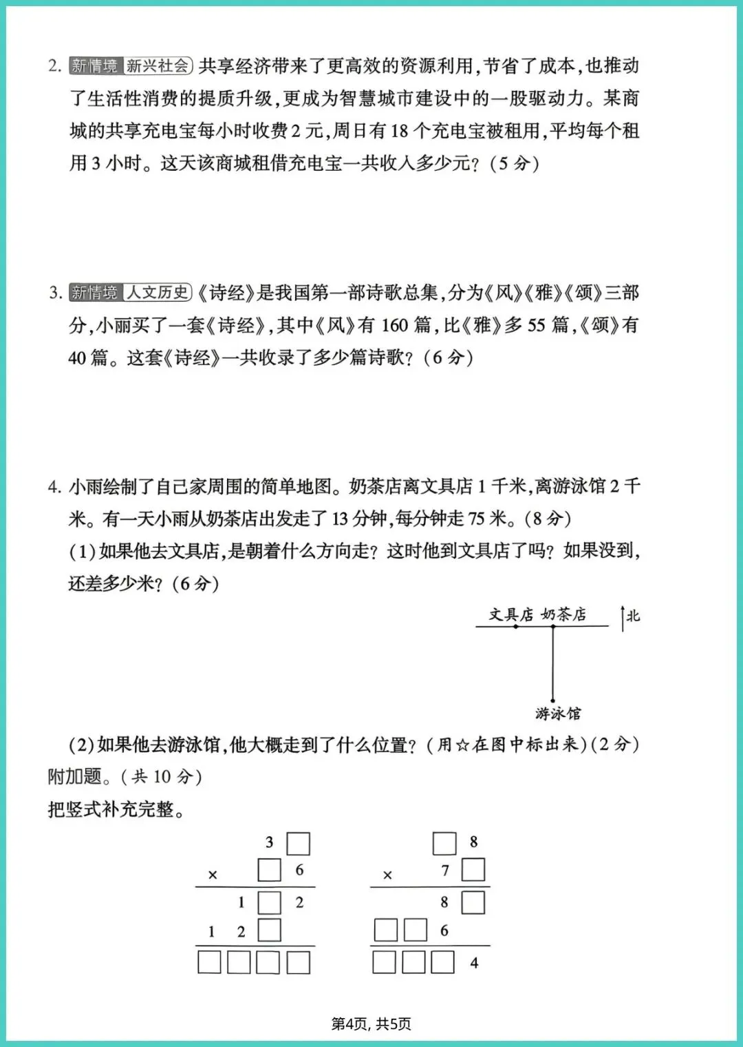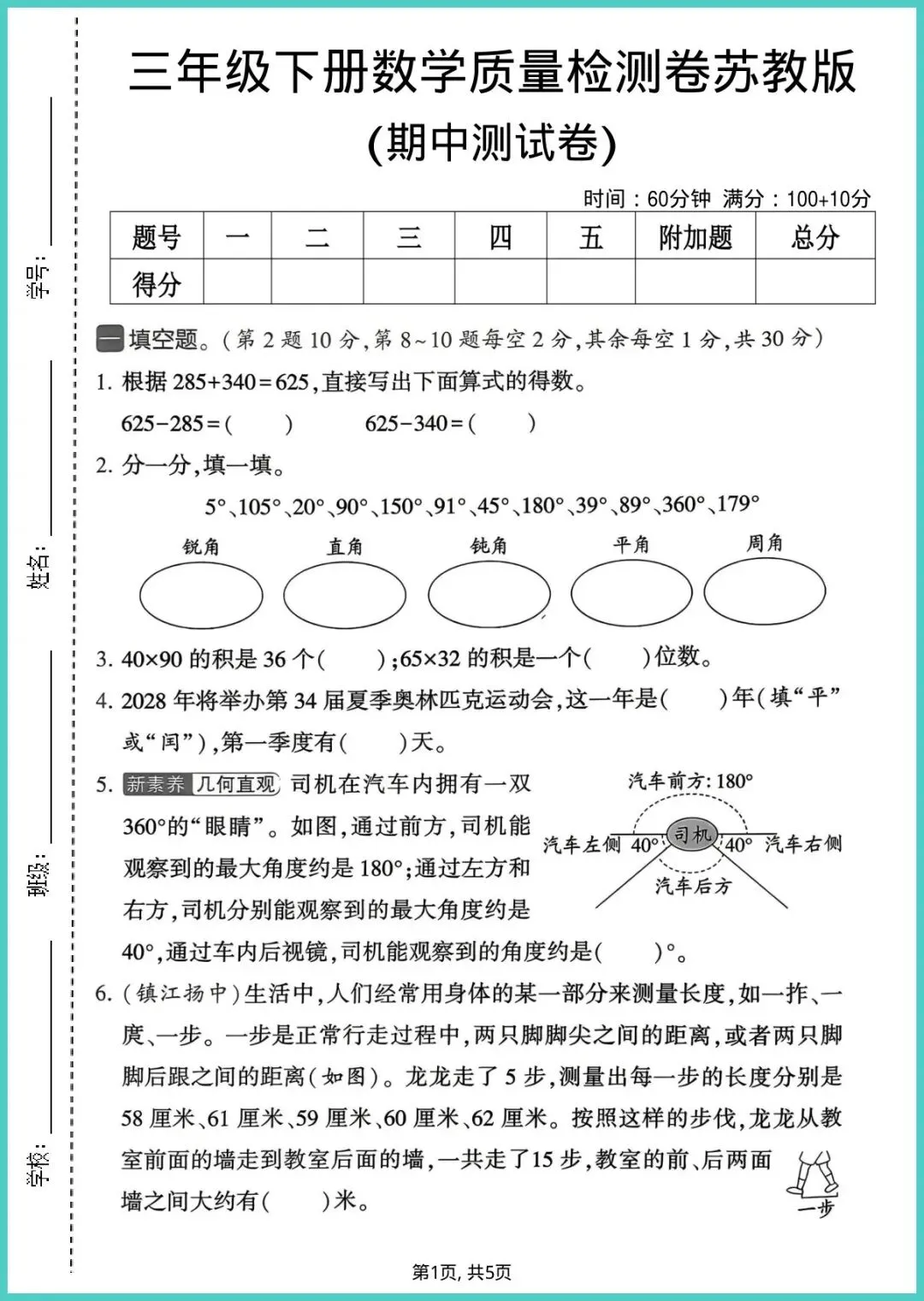 26春苏教版三年级下册数学期中质量检测卷,新鲜出炉5页电子版,手机一点就能打印!这份小卷紧扣校内进度,囊括计算、应用、图形、统计四大模块,题型由浅入深,附标准答案与评分细则,让孩子限时自测,快速锁定薄弱点;家长照着评分栏逐题复盘,辅导不再抓瞎。期中抢分关键期,别让娃打无准备之仗!需要的家长现在就打印,娃做完提个十分不是梦!
