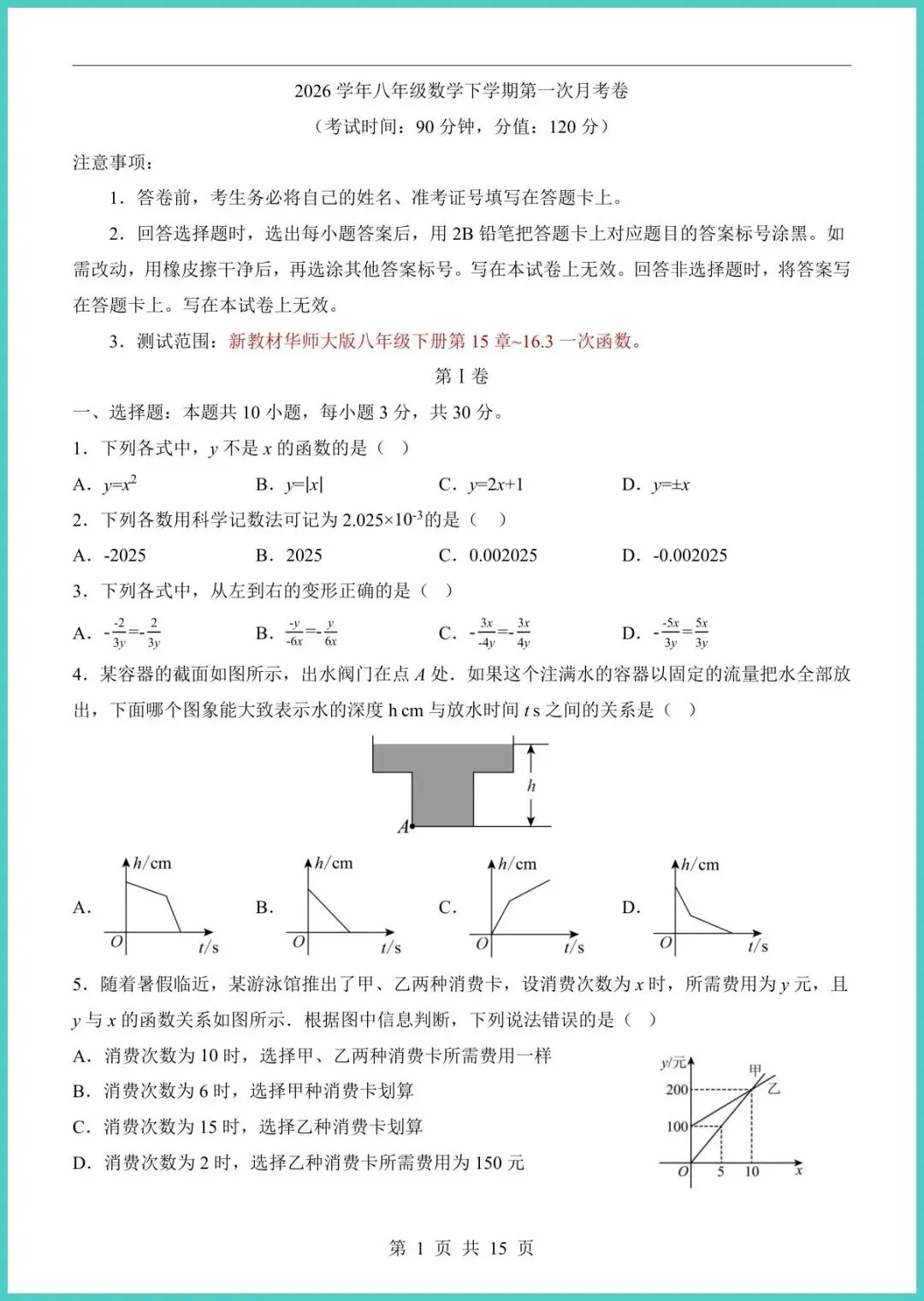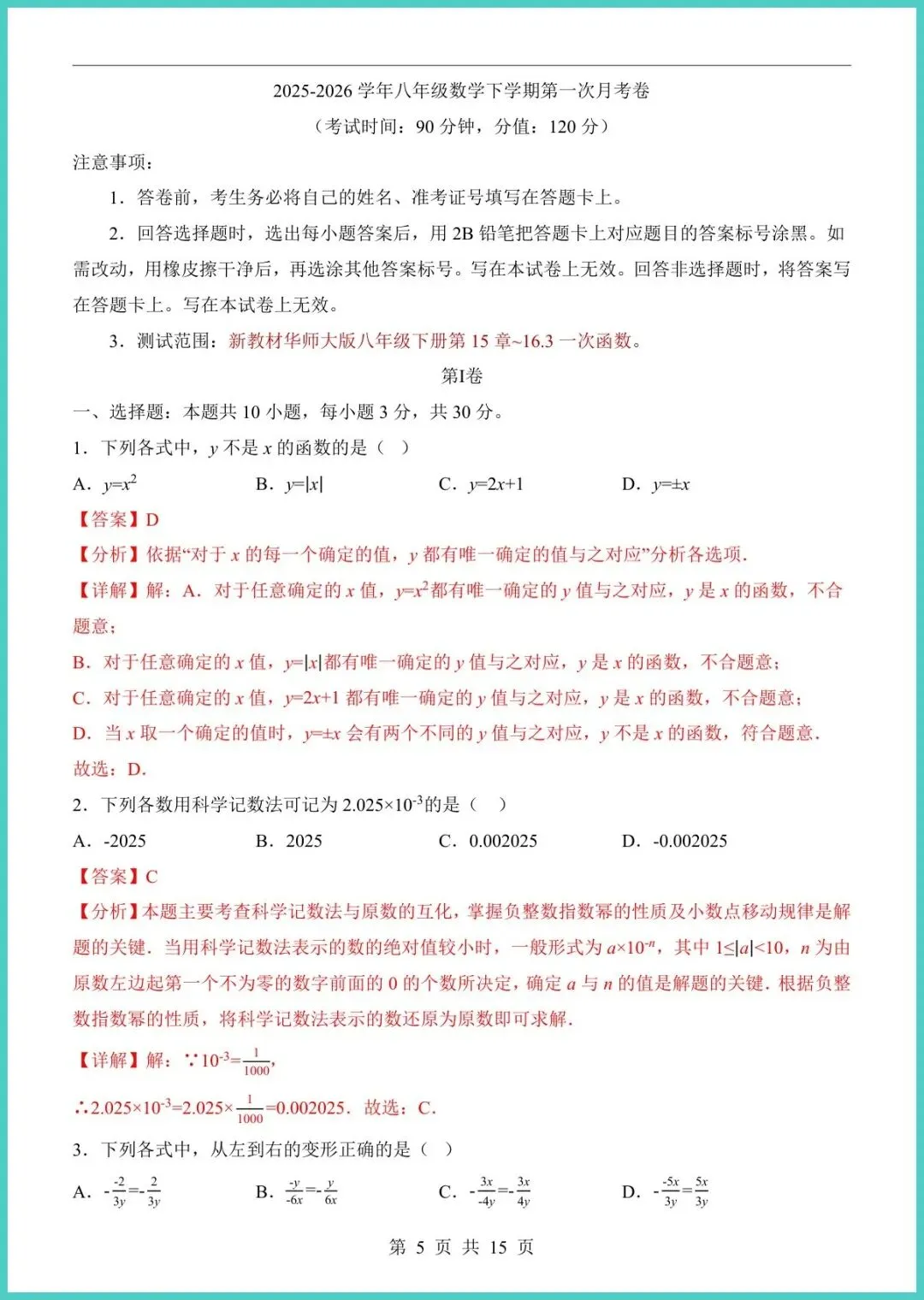 24春华东师大版八年级下册数学第1次月考卷新鲜出炉!15页高清电子版,紧扣新课标,覆盖二次根式、一次函数、勾股定理等月考必考点。每题配详细答案与思路点拨,孩子做完就能自己订正,秒懂易错点;压轴题还附“一题多解”小技巧,帮娃打开思路,提分不迷路。家长群里已刷屏,打印一份,周末限时练,提前摸底,考场不慌!需要的家长赶紧存图打印,让孩子先练起来,月月考稳拿高分!