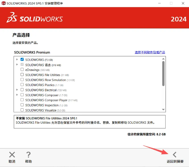 15.按需选择需要的软件,然后点击【返回摘要】。