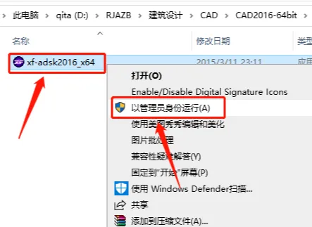 21.鼠标右击【xf-adsk2016_x64】注册机,选择【以管理员身份运行】。