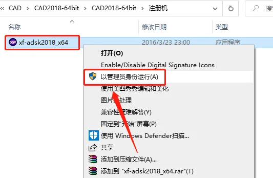 26.鼠标右击【xf-adsk2018_x64】注册机,选择【以管理员身份运行】。