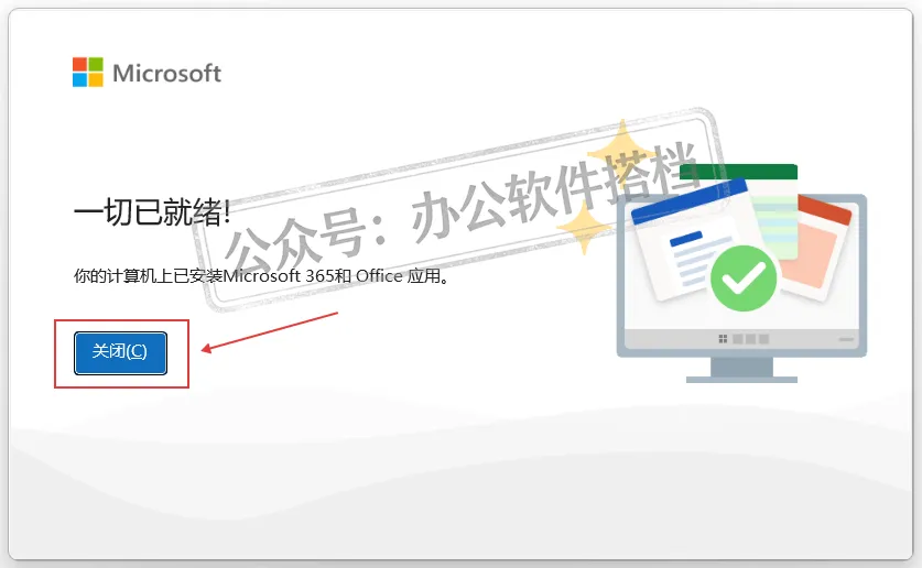 5.等到Visio程序安装完成,显示一切就绪后,点击【关闭】。