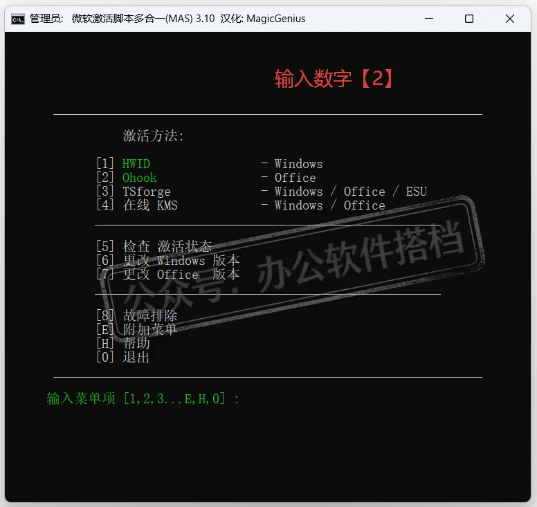 键盘输入数字【2】。