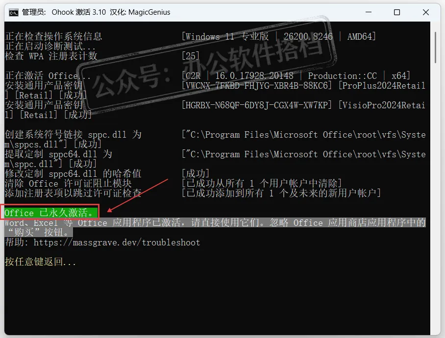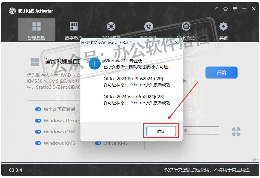 等待一会显示绿色激活就是已经成功,关闭工具即可。