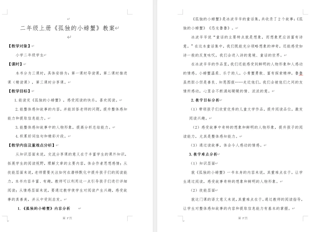 孤独的小螃蟹【二年级 必读】导读课、推进课、分享课三种阅读课型的教案和PPT课件免费下载。