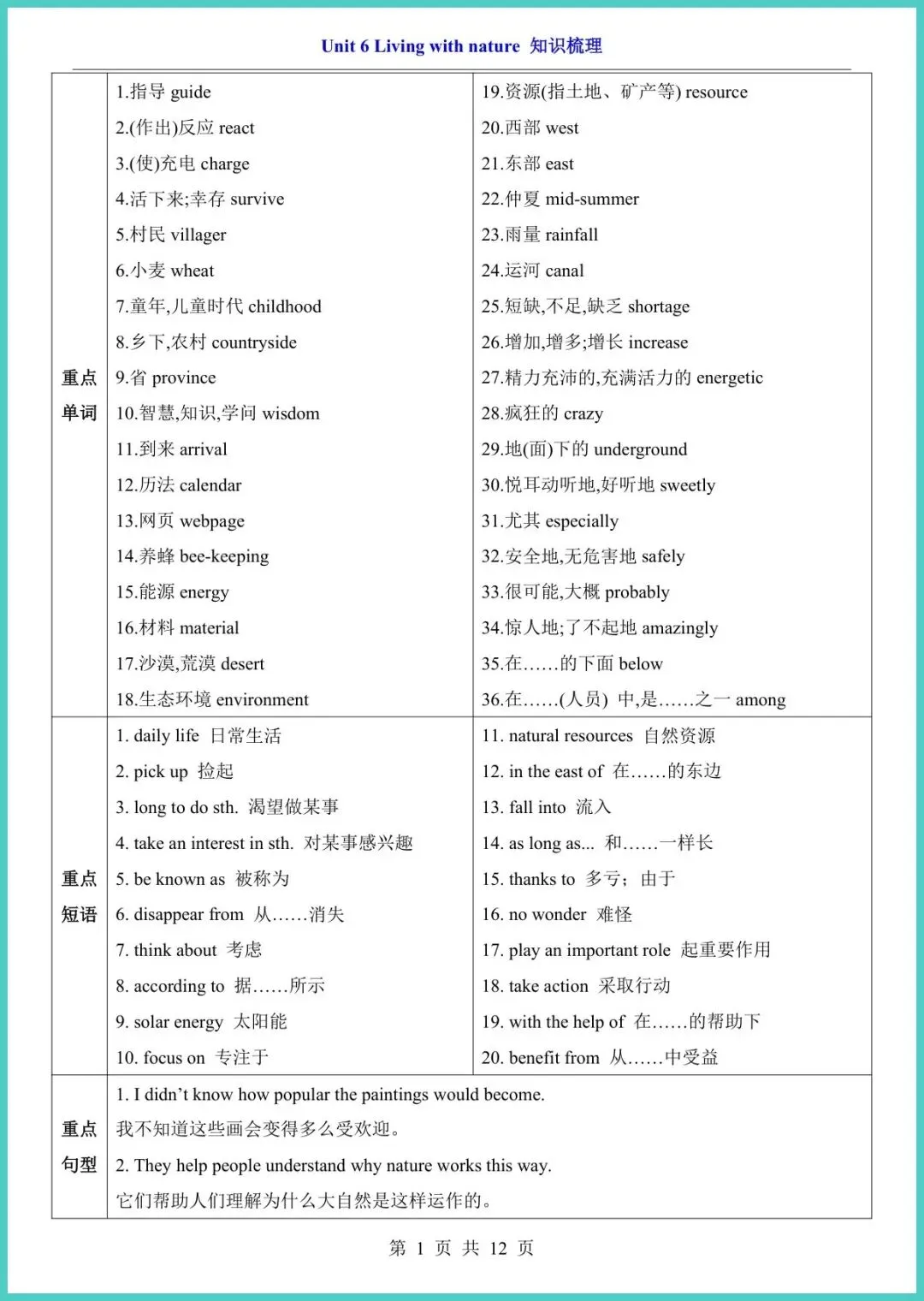 【免费下载】八年级(下)英语Unit_6_知识梳理(外研版) | PDF完整高清电子版可打印