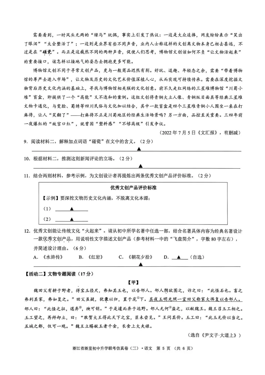 >(免费下载)2604浙里初中升学联考仿真卷(三)(全科含听力)