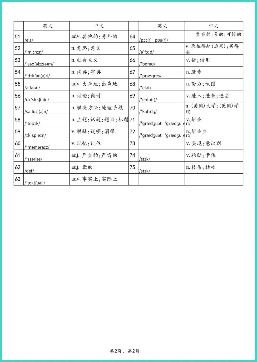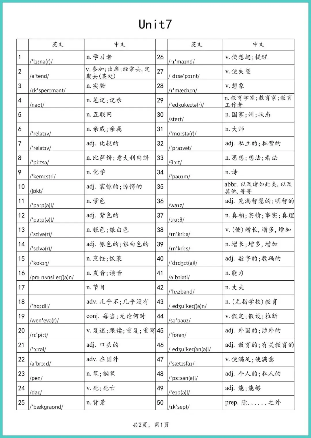 【免费下载】八年级(下)英语单词表默写_带音标(仁爱版) | PDF完整高清电子版可打印