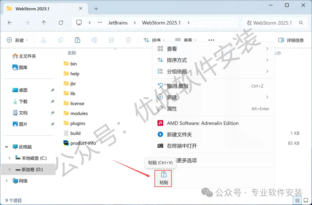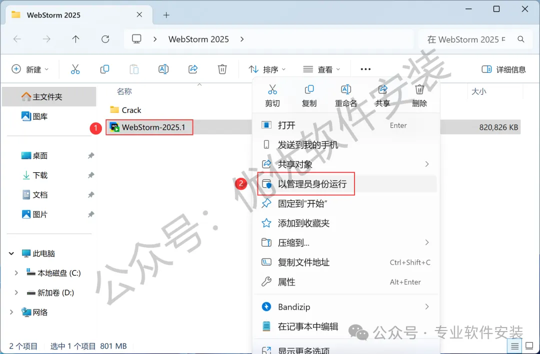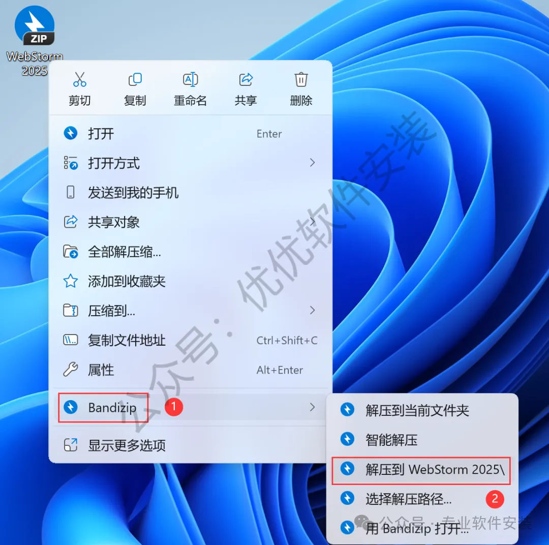 1、下载WebStorm 2025软件安装包到电脑上,右键选择【解压到WebStorm 2025\】