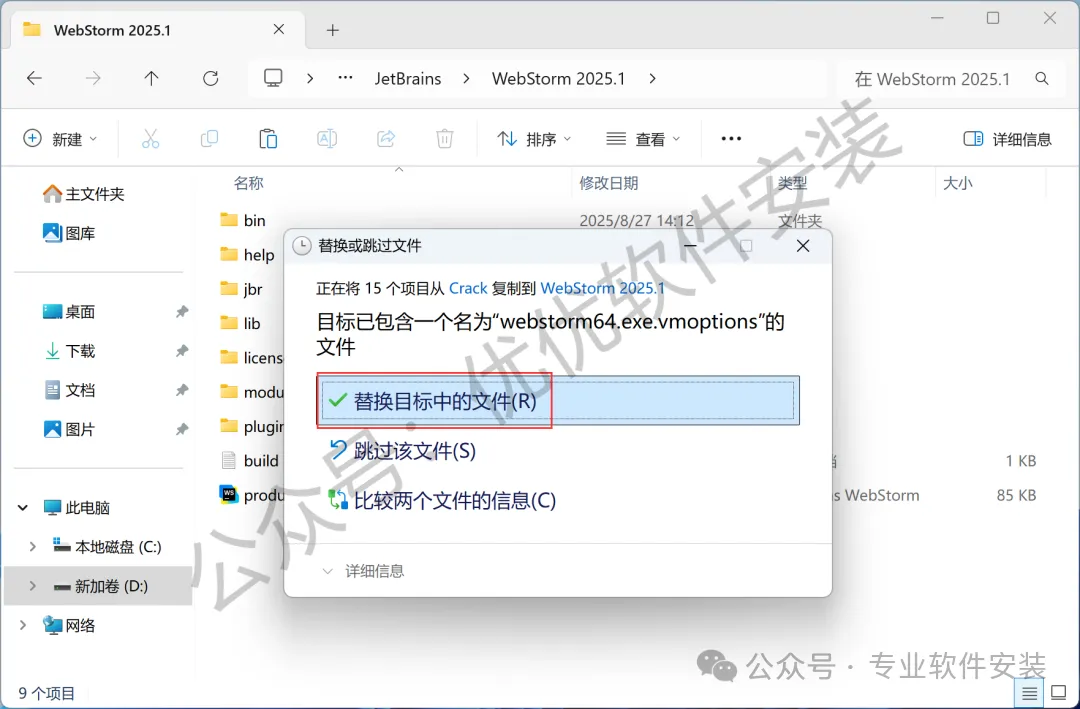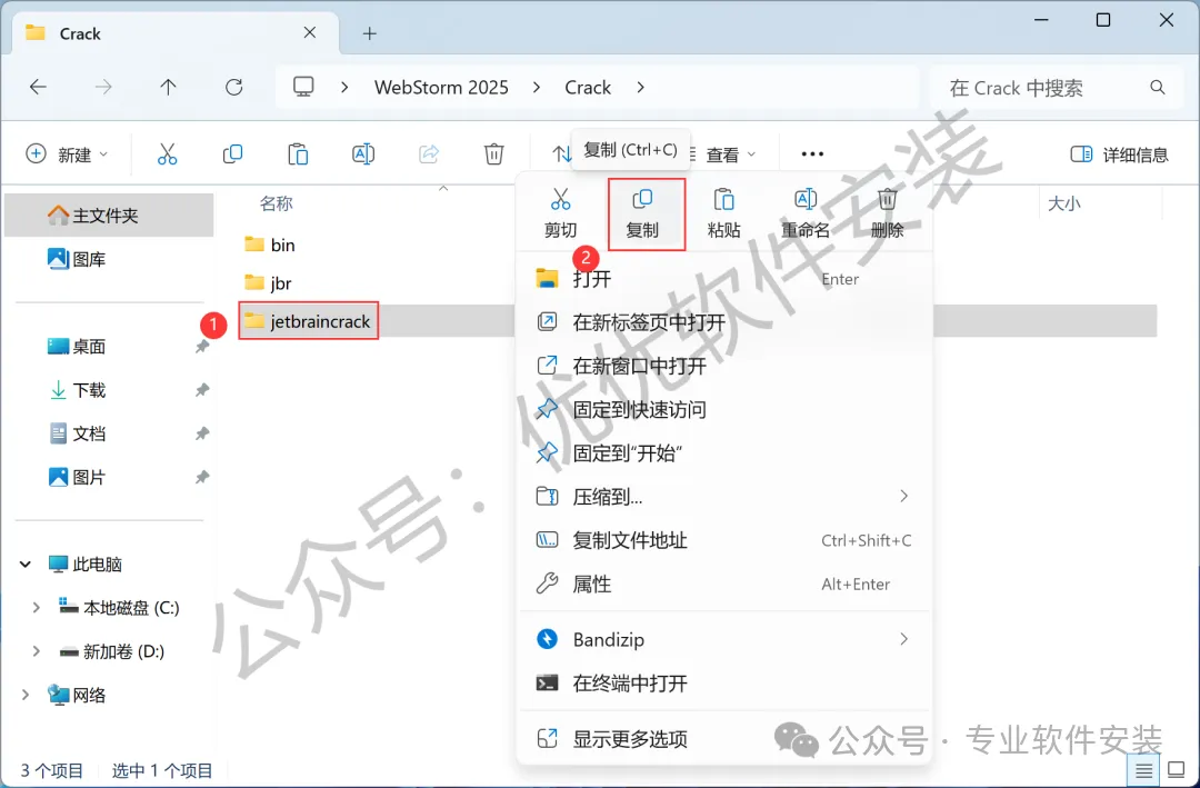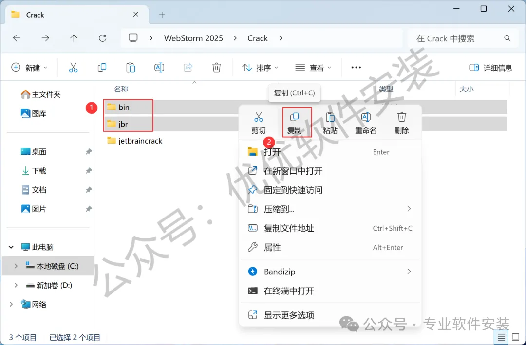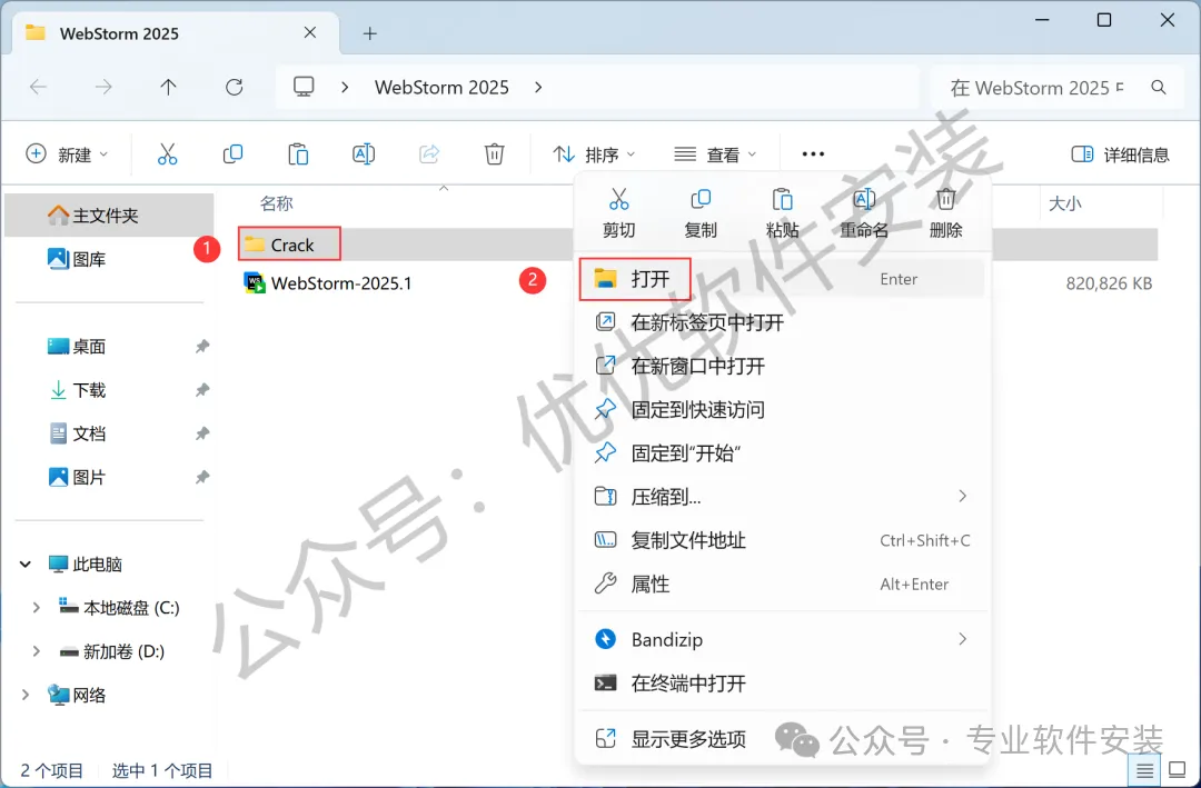 13、回到WebStorm 2025文件夹,找到【Crack】文件夹,右键【打开】它