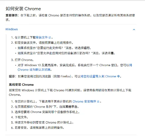 进入页面后,向下滚动找到“计算机”选项,根据自己的系统去选择安装版本,我选择Windwos版本,你会注意到有两个选项可供选择第一个是常规的在线安装程序,需要互联网连接才能完成安装的小文件。我们想要的是第二个选项,就是离线安装程序,点击”Chrome安装程序链接,这时会跳转到另一个页面,再点击”Download Chroem“,它就会自动下载离线安装程序。