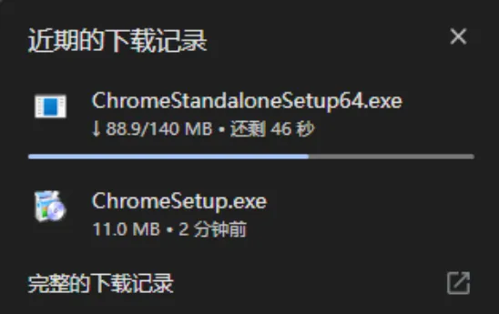 你会注意到,与我们之前看到的10MB在线安装程序相比,该文件的大小要大得多,大约140MB。这是因为该版本文件中,包含了安装所需的一切,下载完成后,运行安装程序文件,Chroem浏览器即可安装完毕。并可以使用安装过程中无需连接联网,你已经使用离线安装程序成功下载并安装了谷歌浏览器。