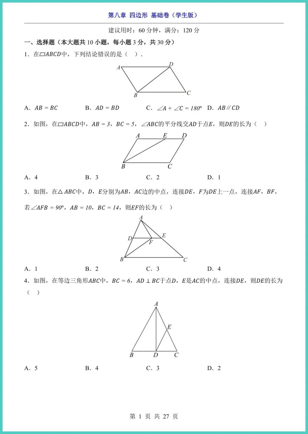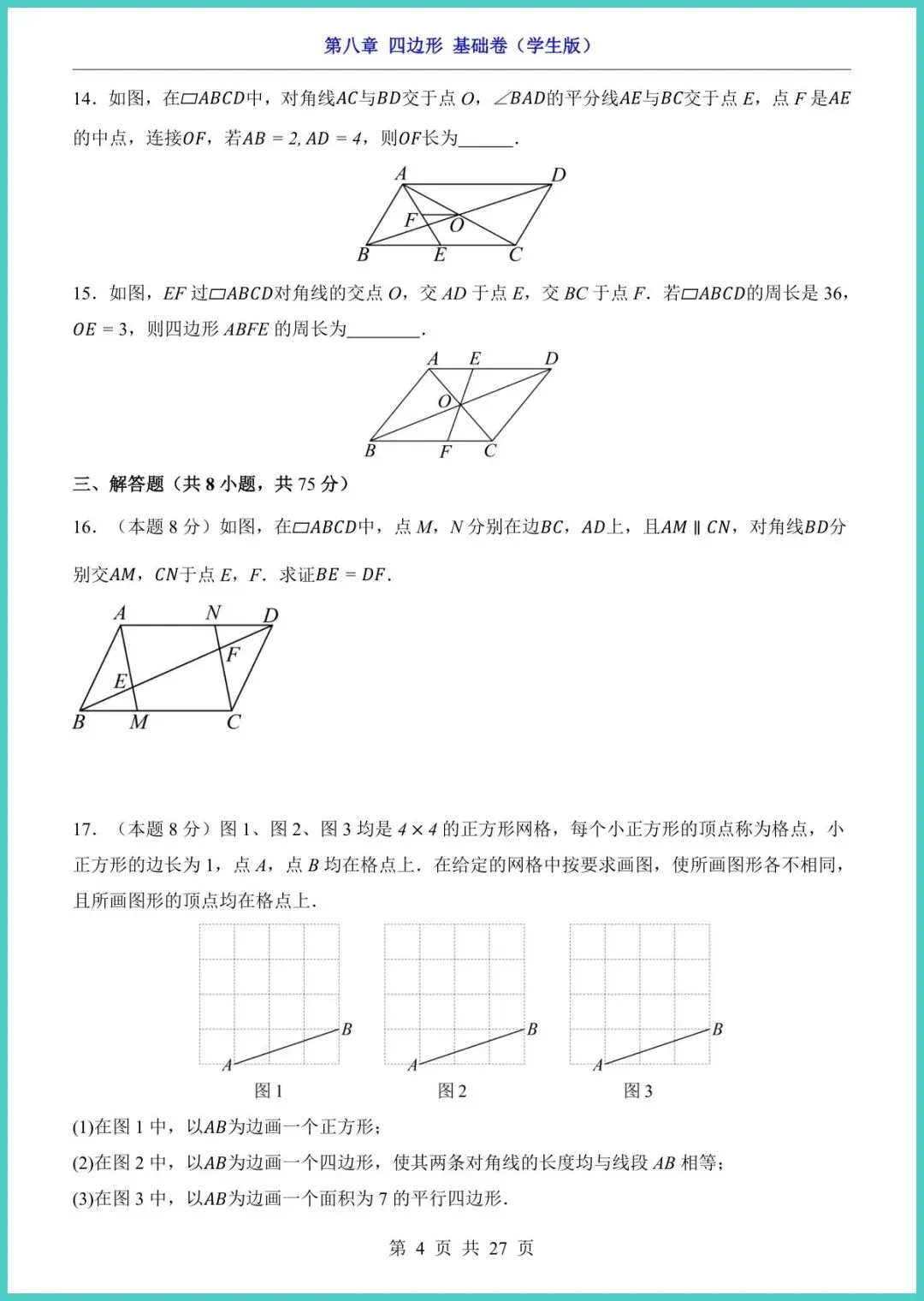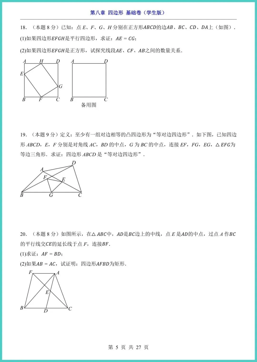 【免费下载】八年级(下)数学第8章四边形_基础卷(青岛版) | PDF完整高清电子版可打印