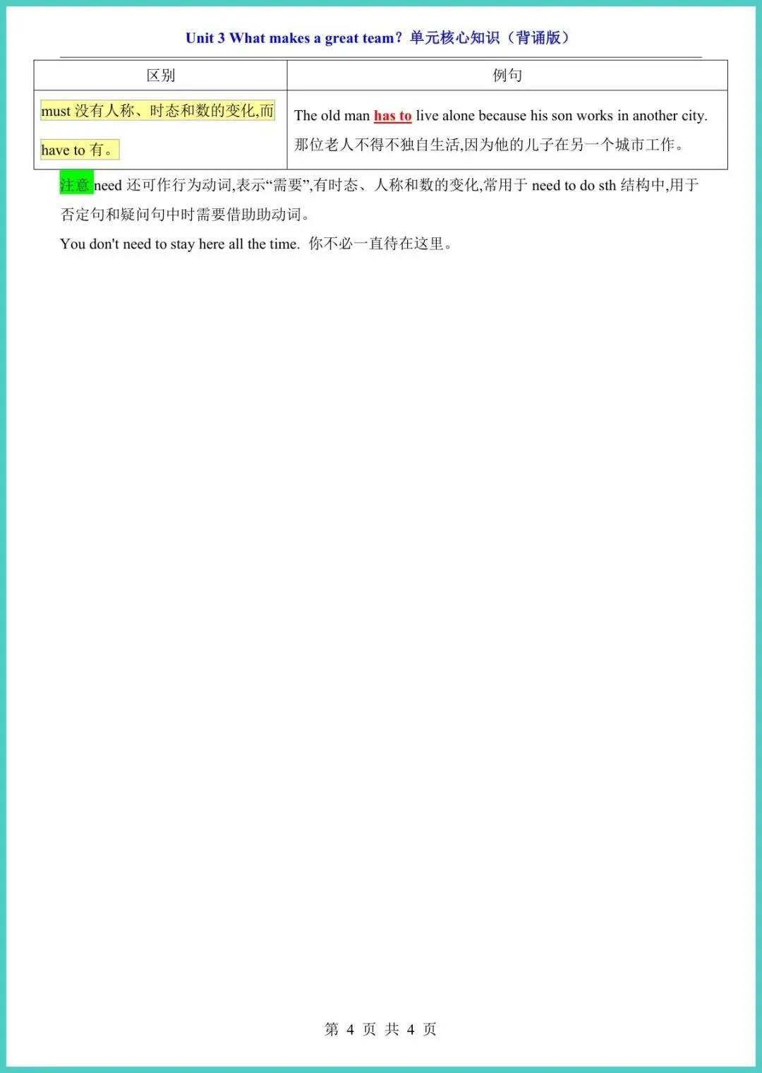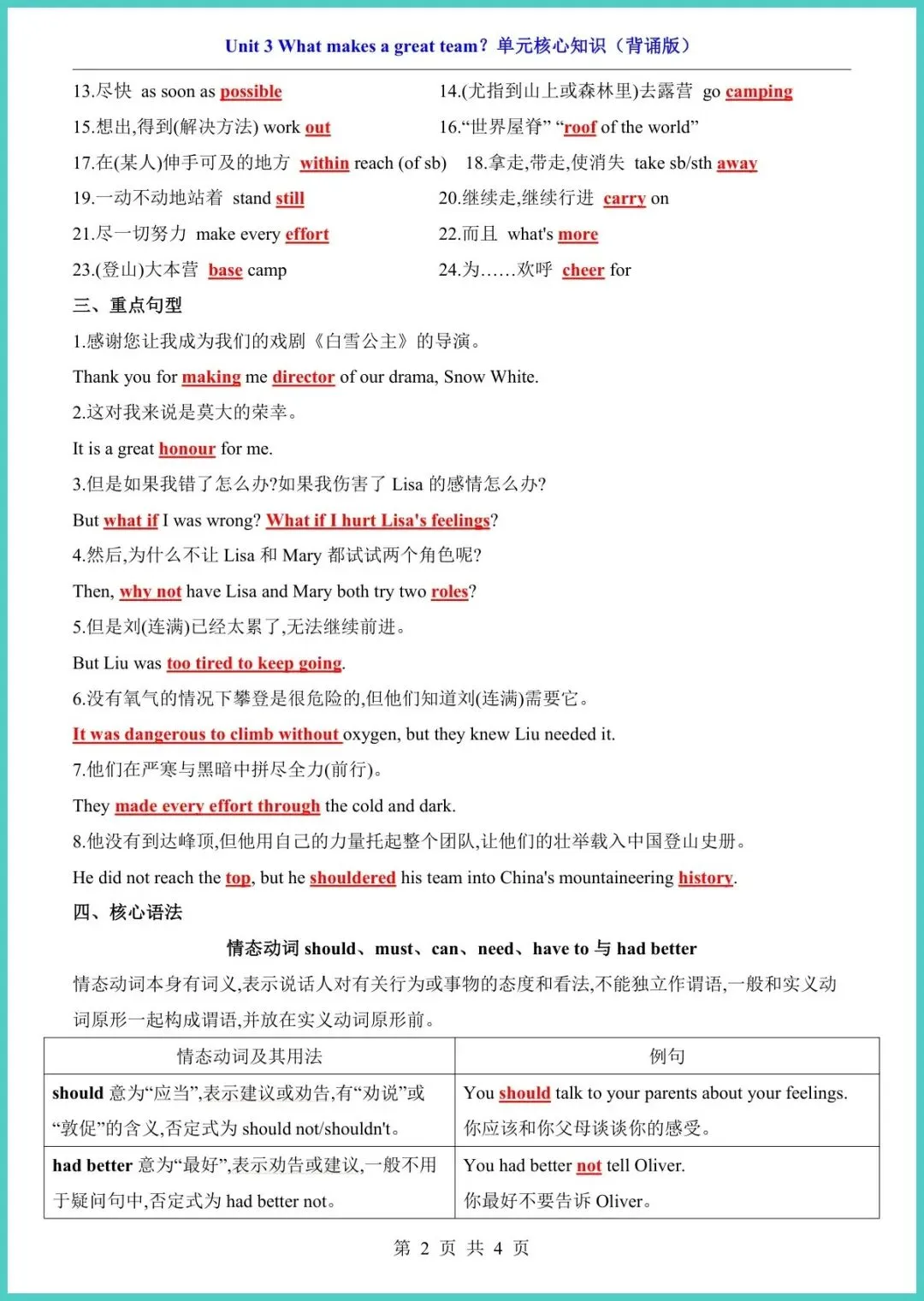 【免费下载】八年级(下)英语Unit_3_核心知识(外研版) | PDF完整高清电子版可打印