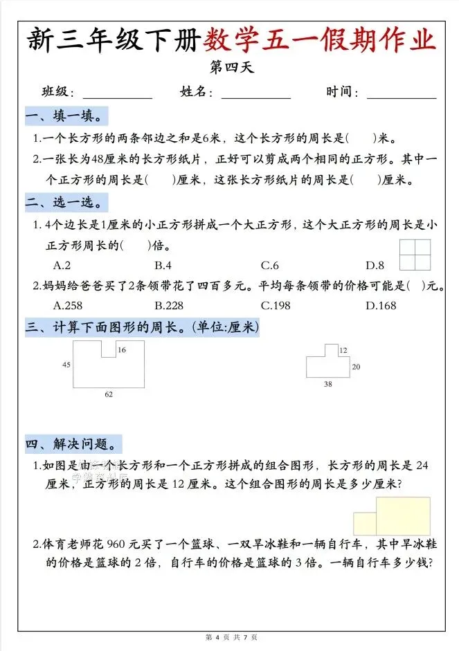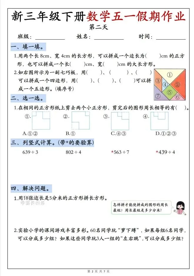今天给大家整理了26春三年级下册数学五一假期作业,转发给朋友或班级群,受益更多人,帮助孩子学习!