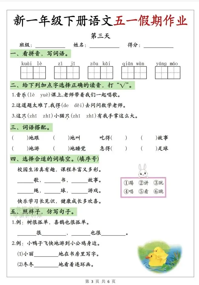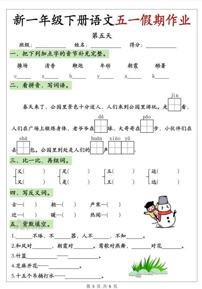 今天给大家整理了26春一年级下册语文五一假期作业,转发给朋友或班级群,受益更多人,帮助孩子学习!