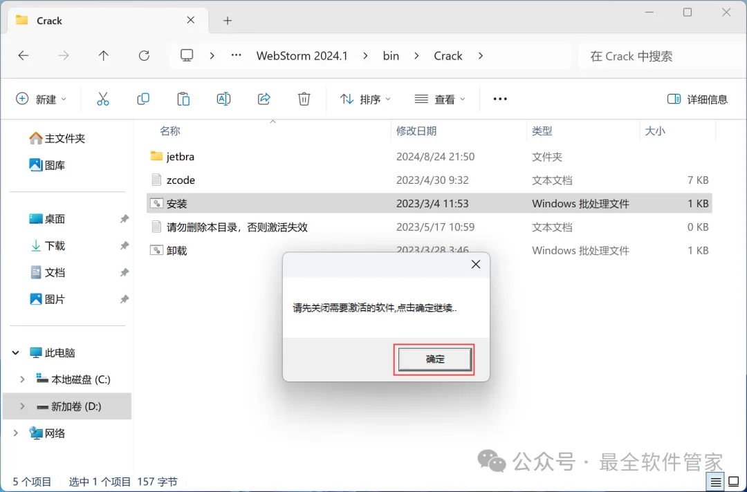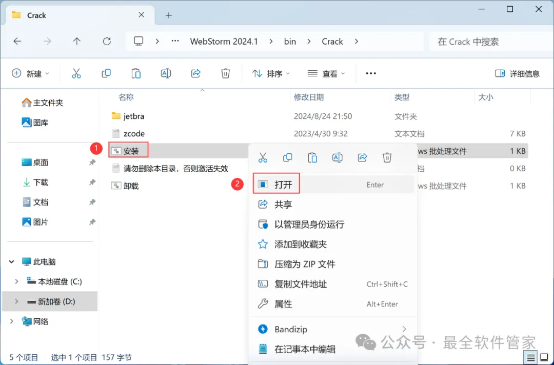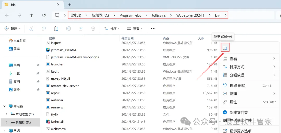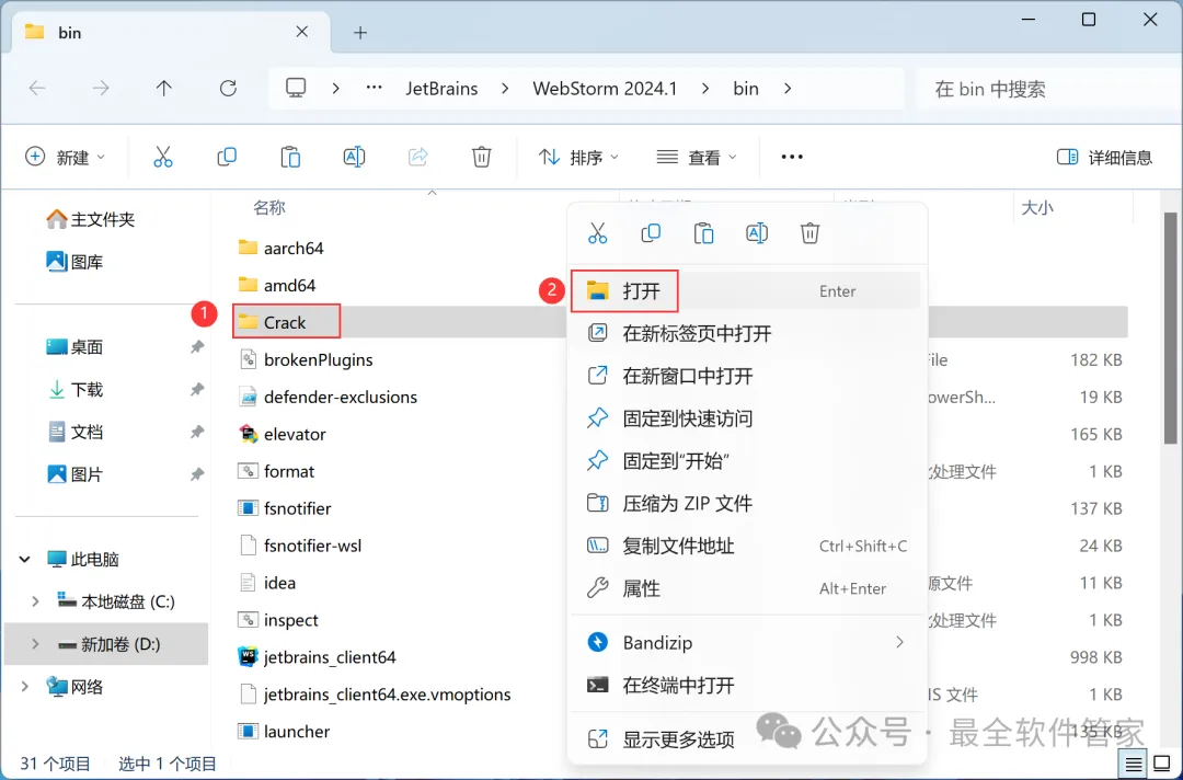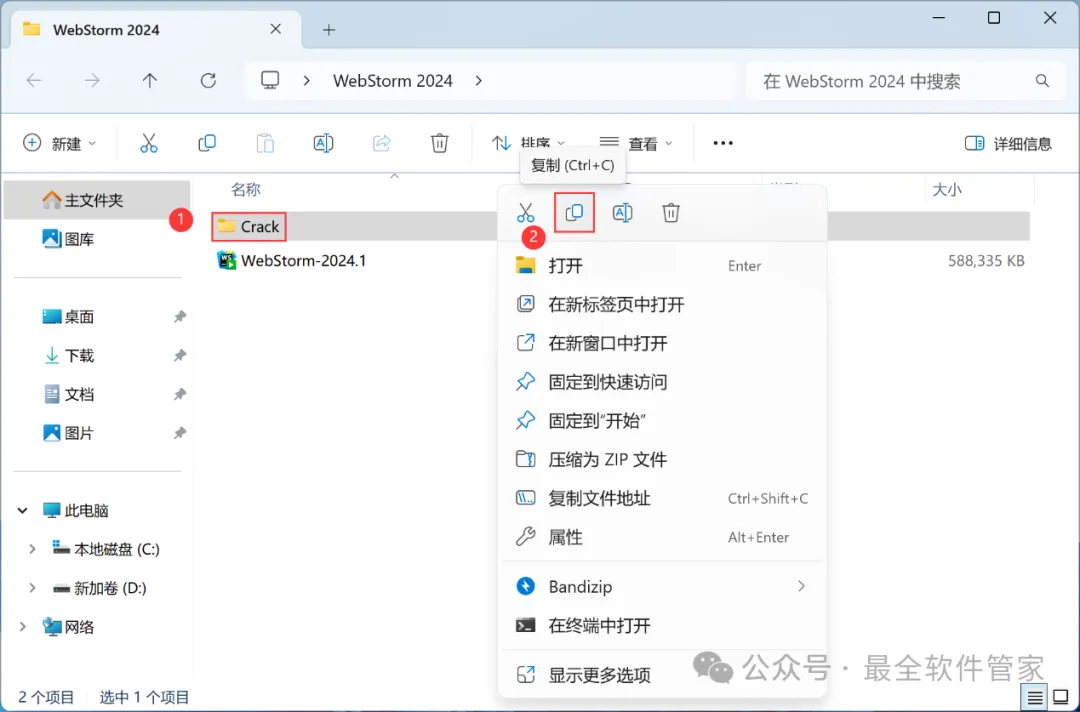 10、回到WebStorm 2024文件夹,找到【Crack】文件夹,右键点击【复制按钮】