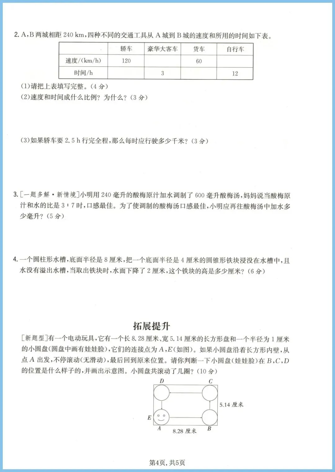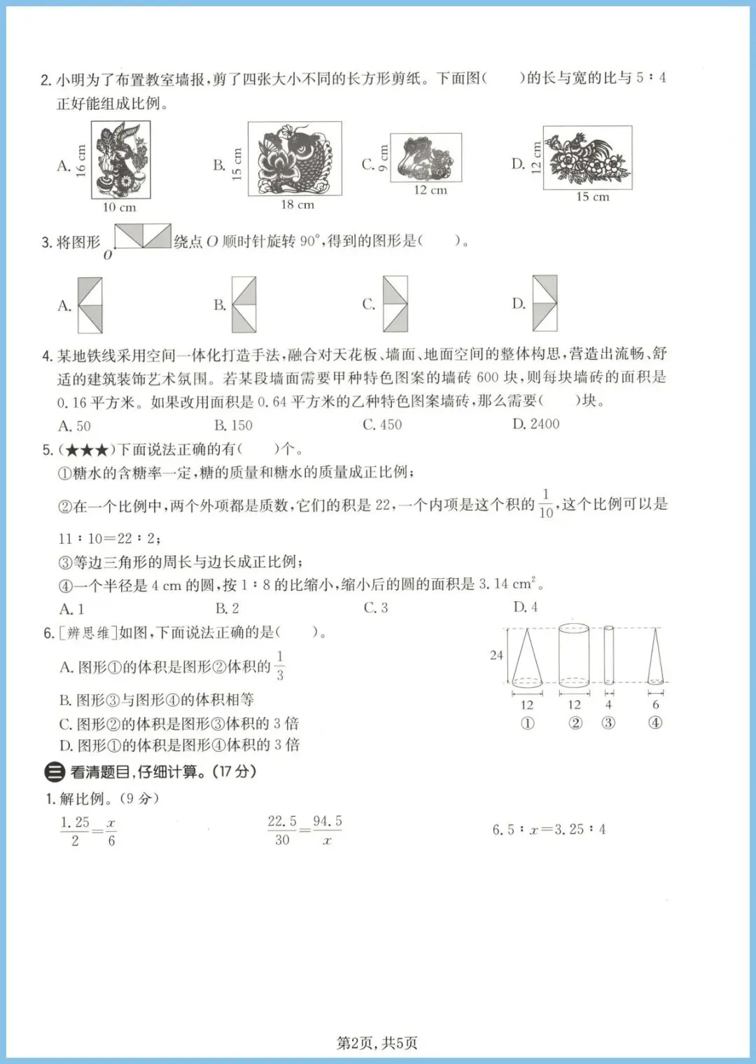 【免费下载】六年级(下)数学_期中拔尖测试卷2《北师版》 | PDF完整高清电子版可打印