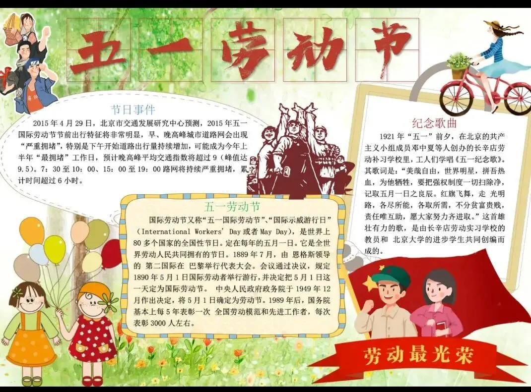 本文分享的是【〈130张〉五一劳动节手抄报模板】