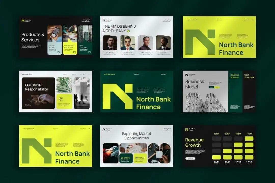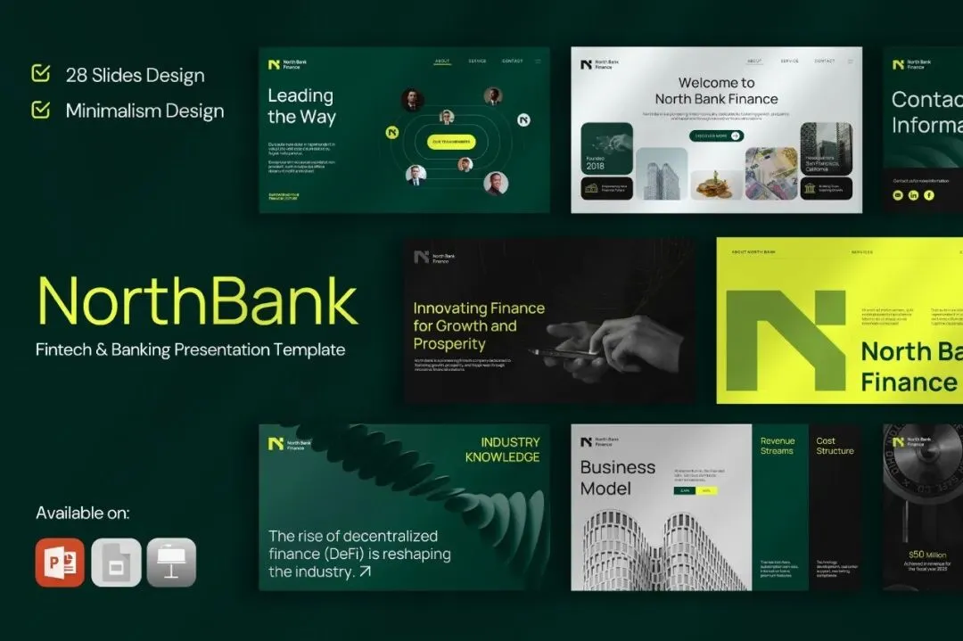 【免费下载】28页现代金融银行科技品牌指南VI作品集设计展示PPT幻灯片Keynote演示文稿Google Slide模板